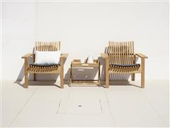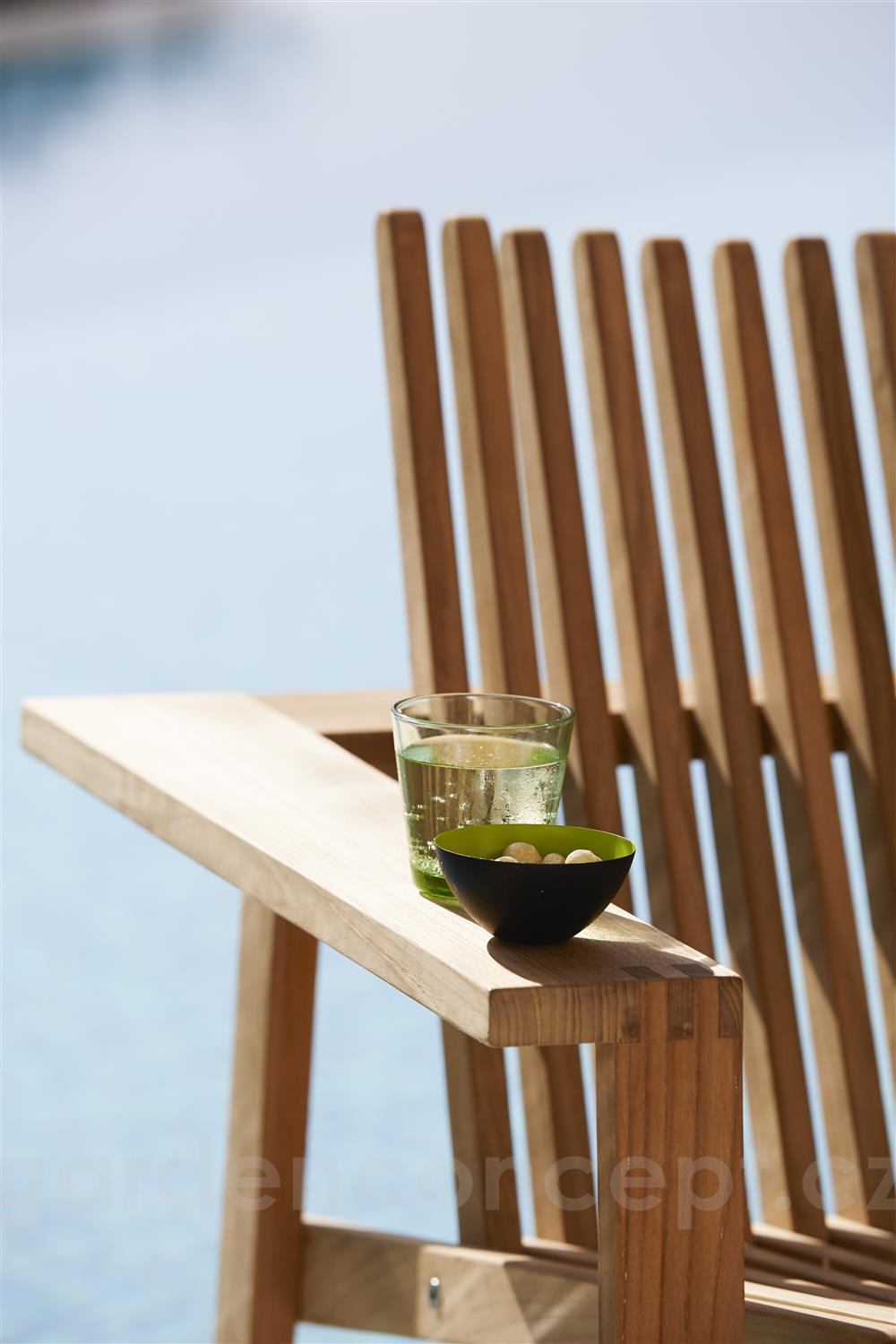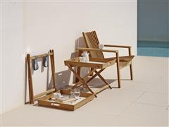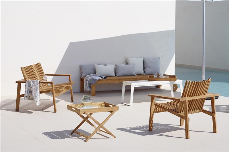 Designová kolekce teakového venkovního nábytku ve skandinávském stylu.