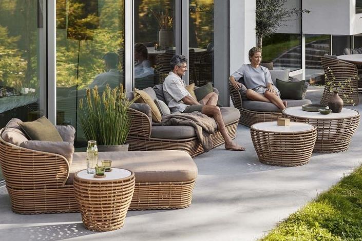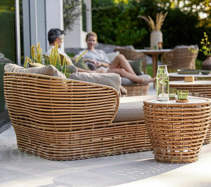 Kolekce Basket je vyrobena z hliníku a umělého ratanu a je dostupná také jako jídelní nábytek