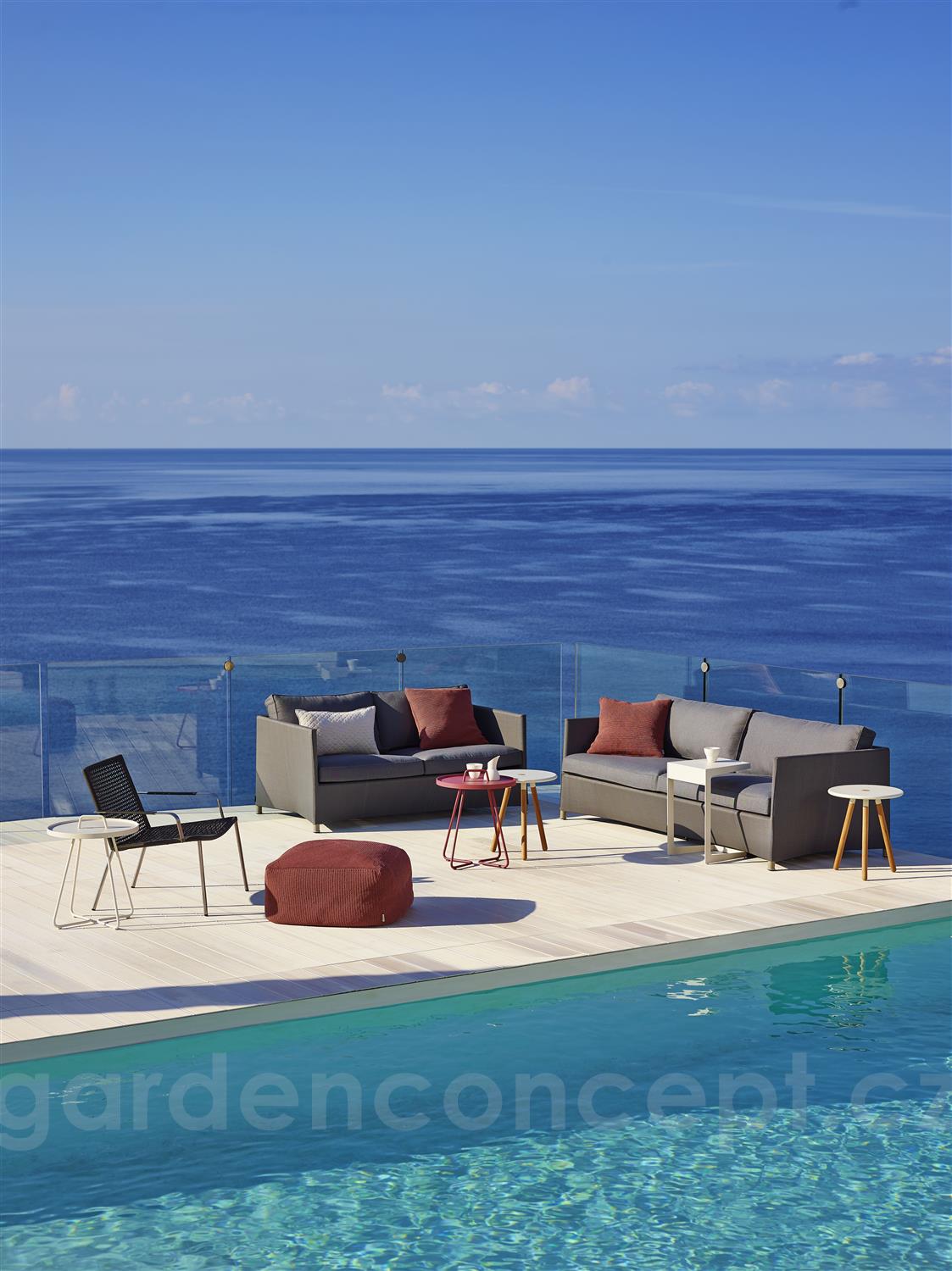 Venkovní nábytek je navržen z hliníku a textilenu.