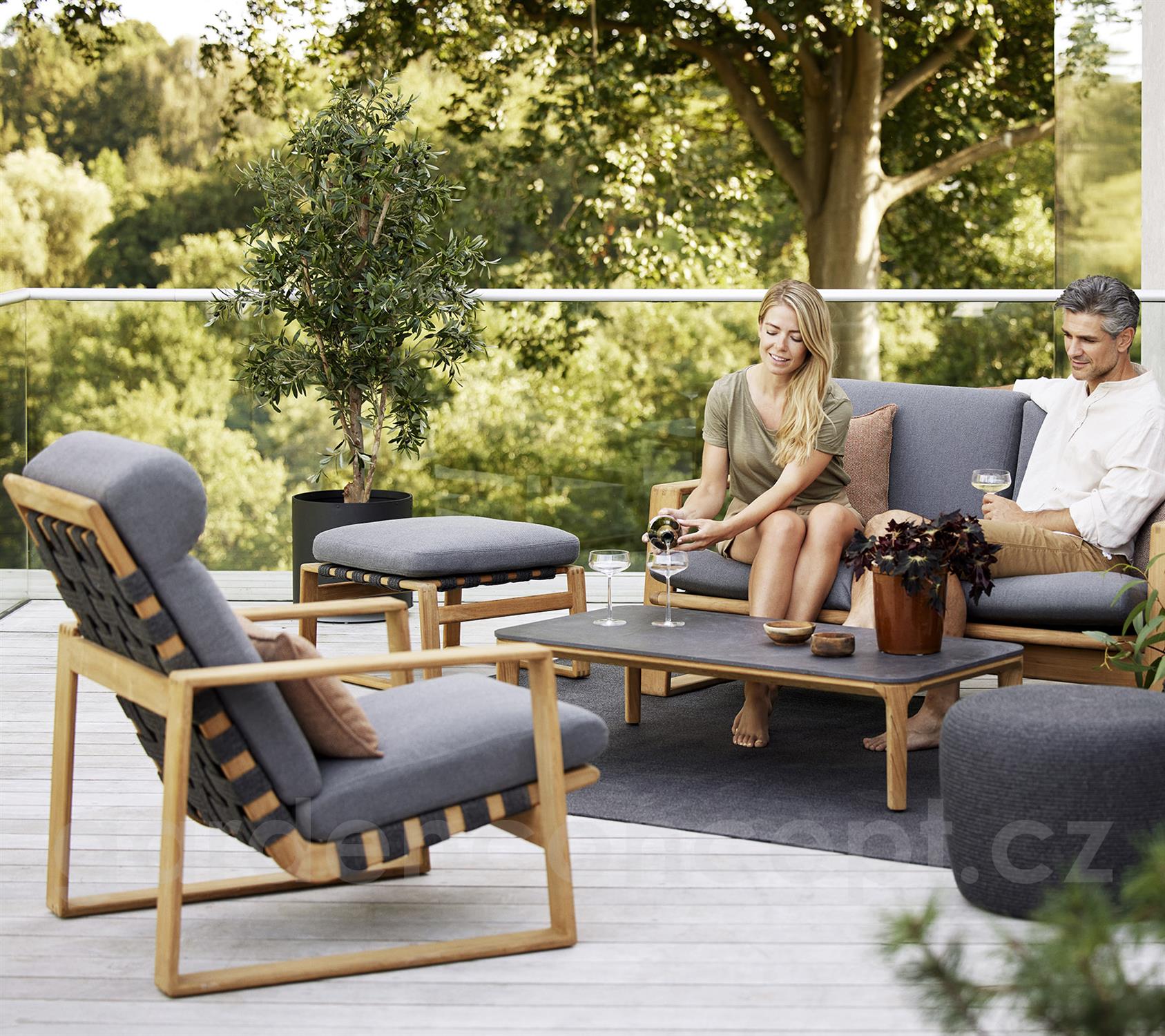 Kolekce lounge nábytku z teakového dřeva v kombinaci s lankovým výpletem.