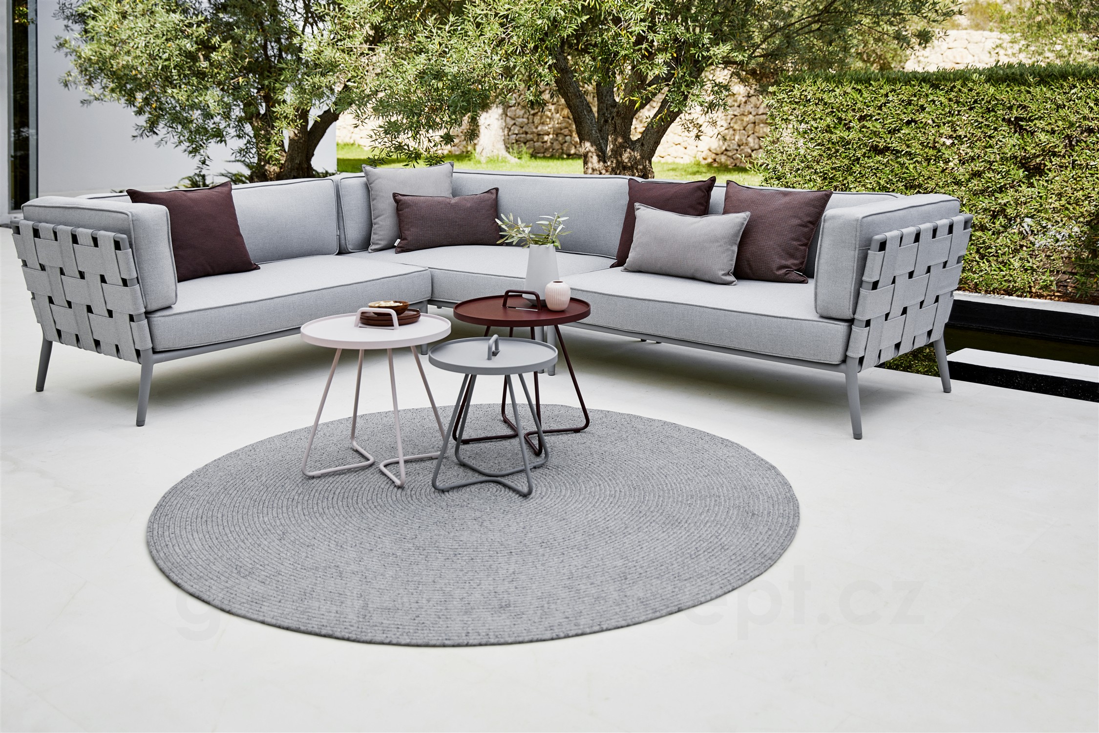 Kolekce obsahuje venkovní boční odkládací stoleky v různých velikostech.