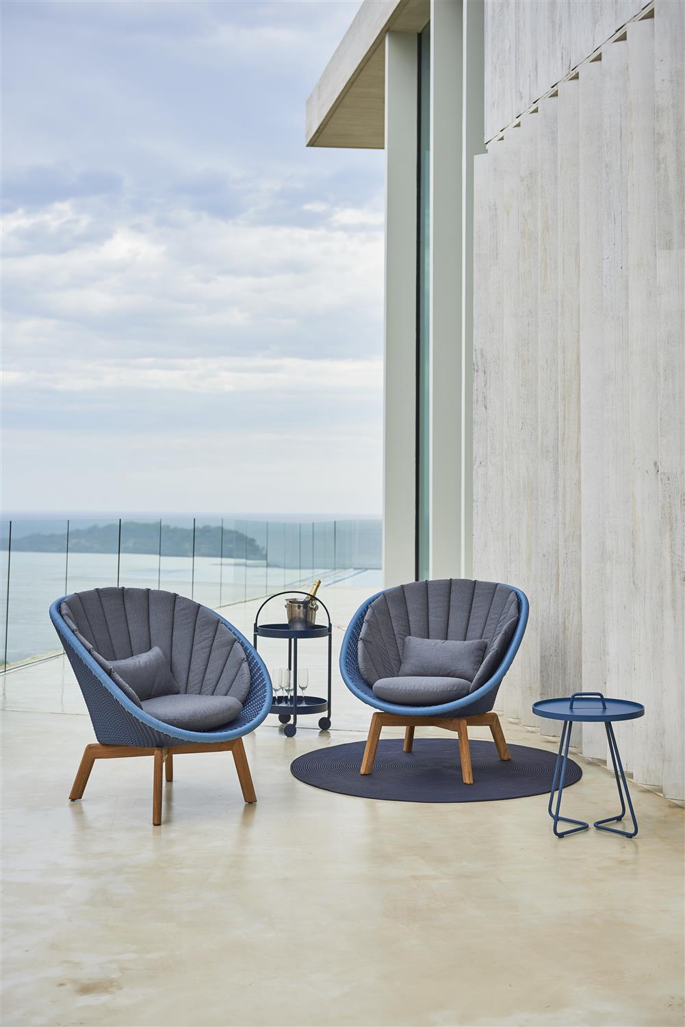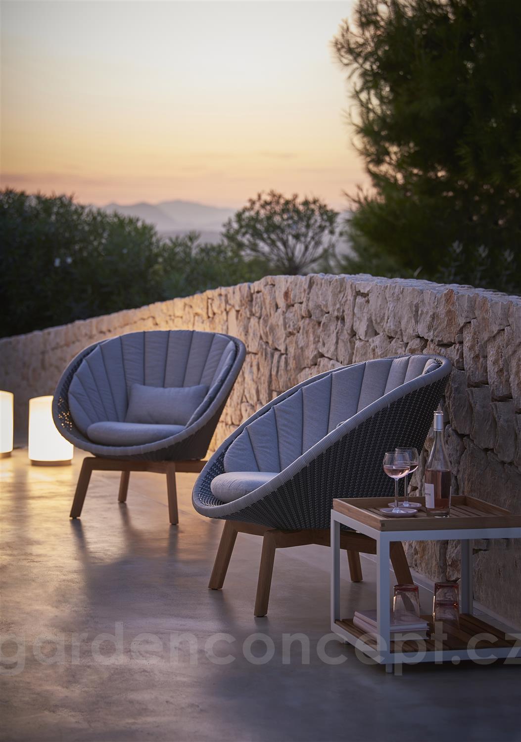 Kolekce Peacock Lounge obsahuje zahradní nízké křeslo. Křeslo má hliníkový rám, který je opletený umělým ratanem. Kolekci Peacock Lounge doporučujeme kombinovat se zahradním jídelním nábytkem