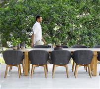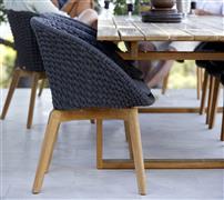 Kolekce Peacock Rope Dining je moderní venkovní nábytek, kombinuje teakové dřevo a široký lankový výplet. Lze ji kombinovat s kolekcí zahradního sedacího nábytku