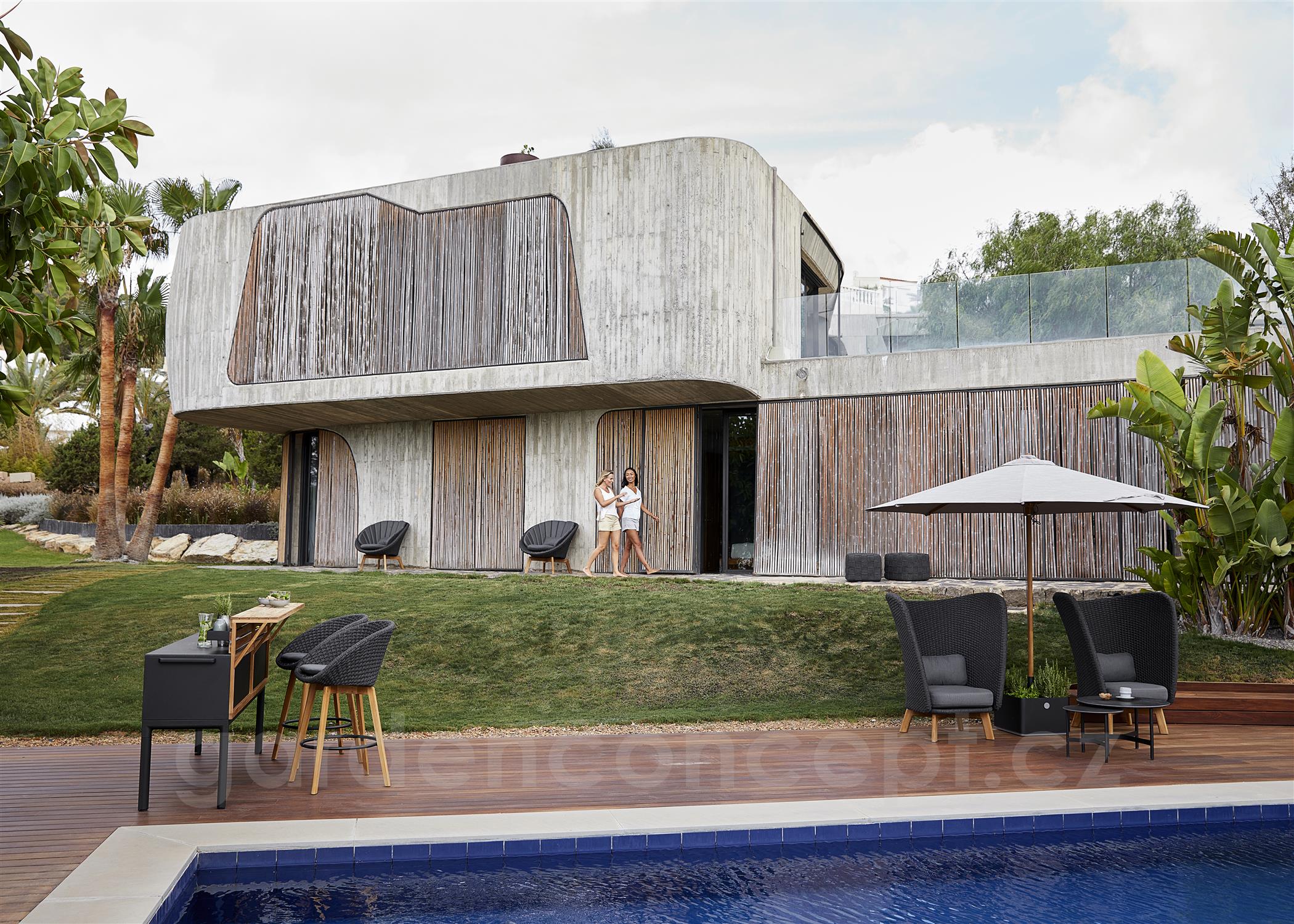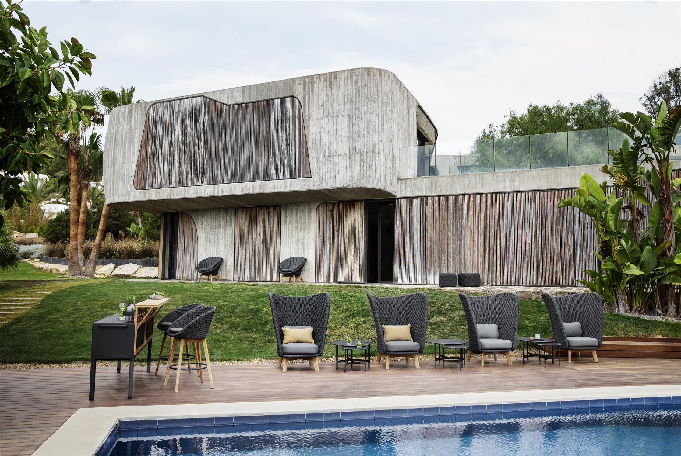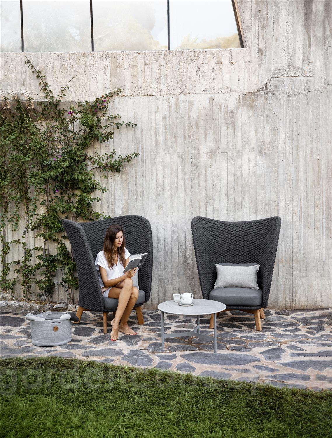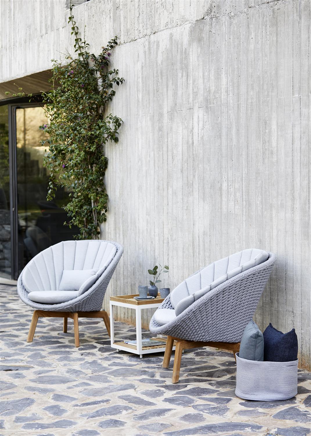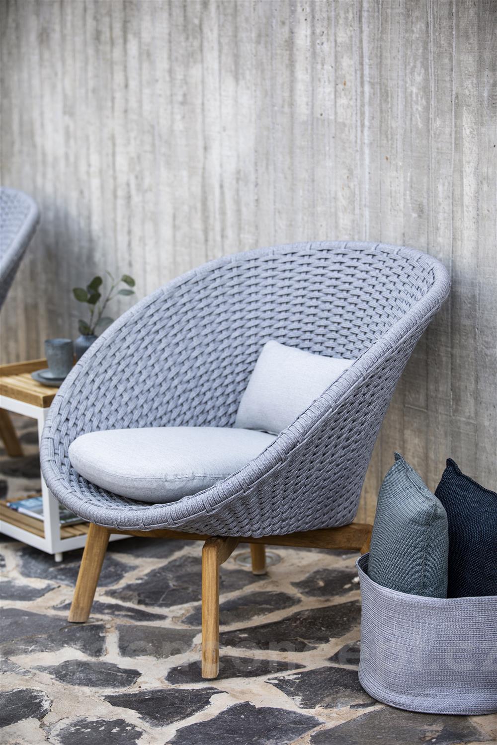 Kolekce Peacock Lounge obsahuje zahradní nízké křeslo. Křeslo má hliníkový rám, který je opletený lankovým výpletem. Kolekci Peacock Lounge doporučujeme kombinovat se zahradním jídelním nábytkem