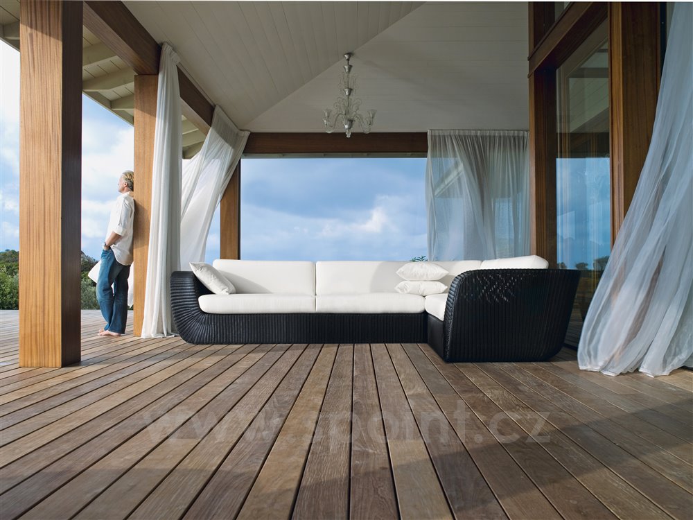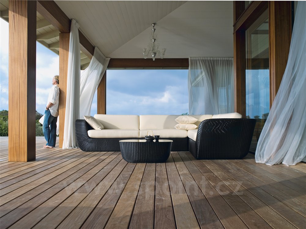 Venkovní modulový nábytek z umělého ratanu Savannah značky Cane-line. Modulová sedací sestava, kterou si můžete díky jednotlivým dílům sestavit podle Vašich představ a prostorových možností. Zajímavým dílem je denní postel, která vznikne spojením dvou relaxačních lehátek.