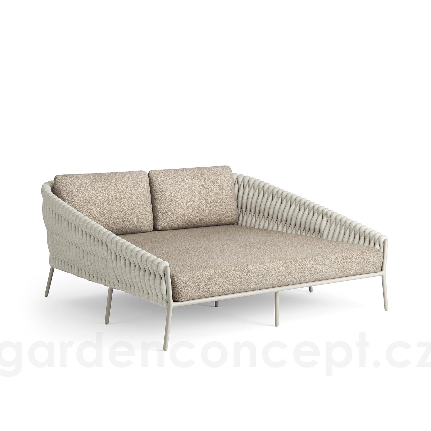 Denní postel Fortuna Socks, Jati Kebon, 167x172x83 cm, rám hliník barva dune mat, výplet barva linen 14 mm, sedáky venkovní látka Sunproof Jalousie Beige