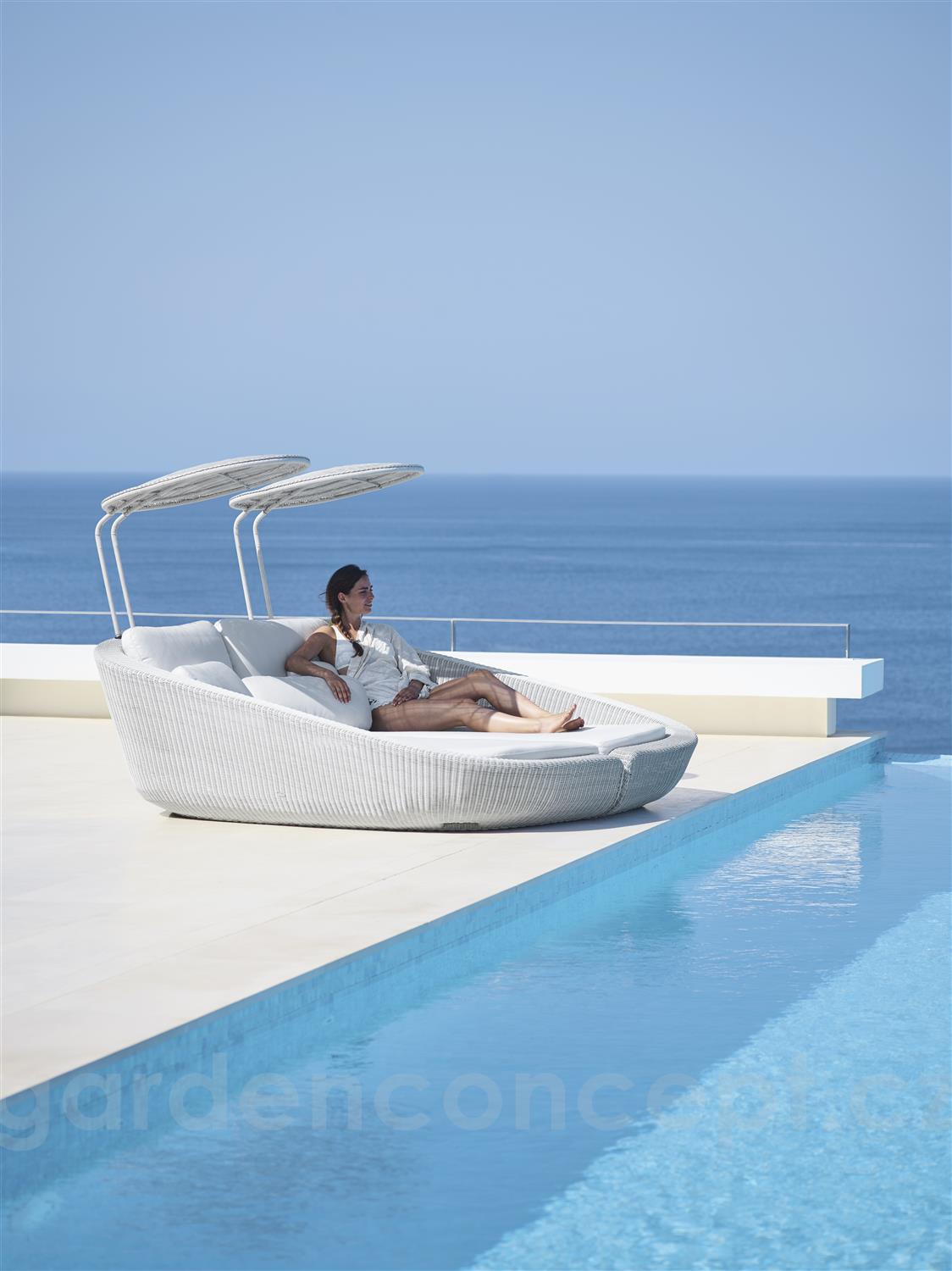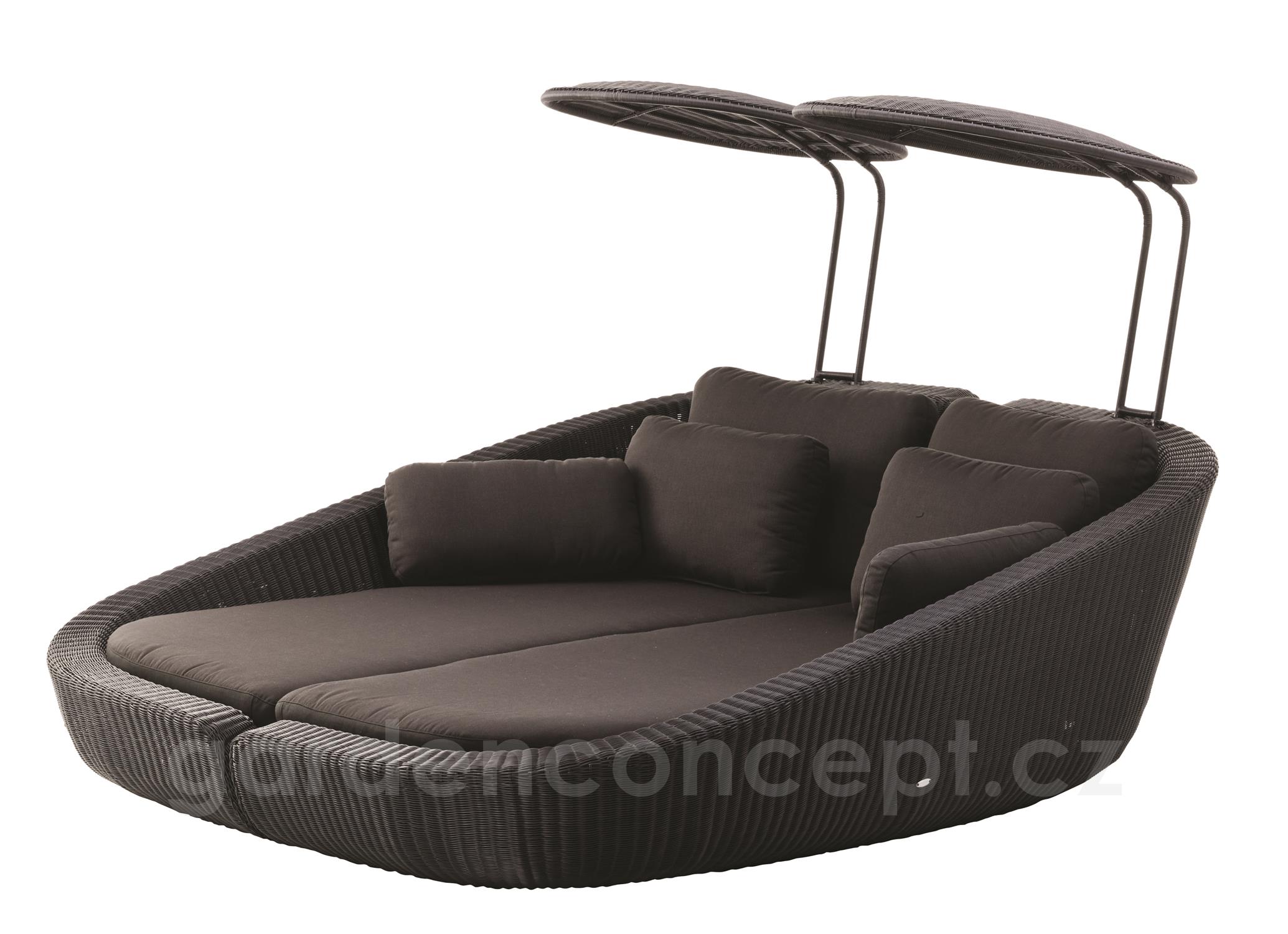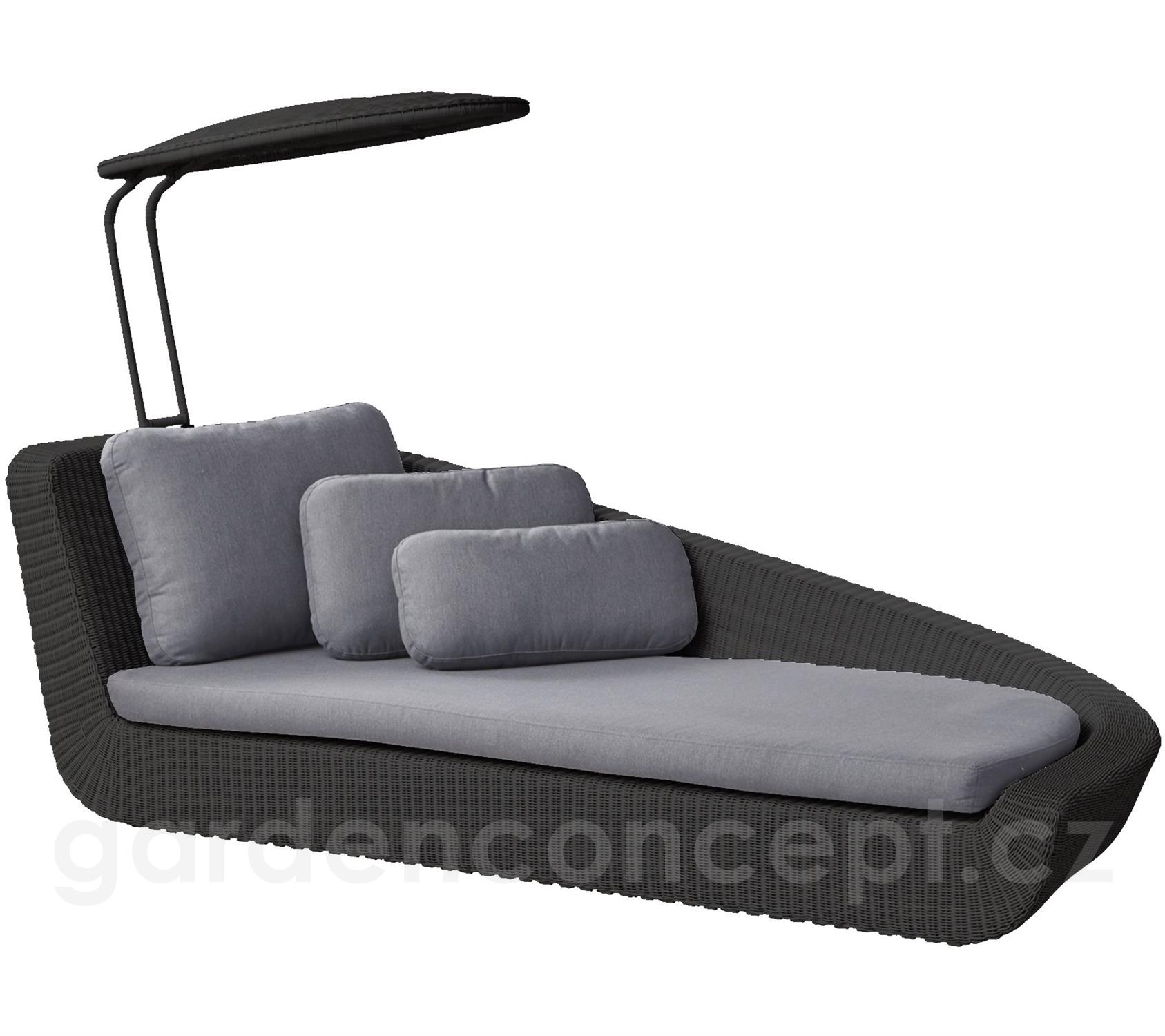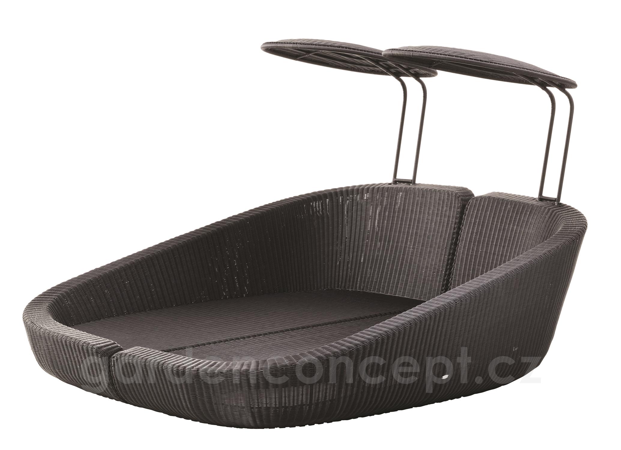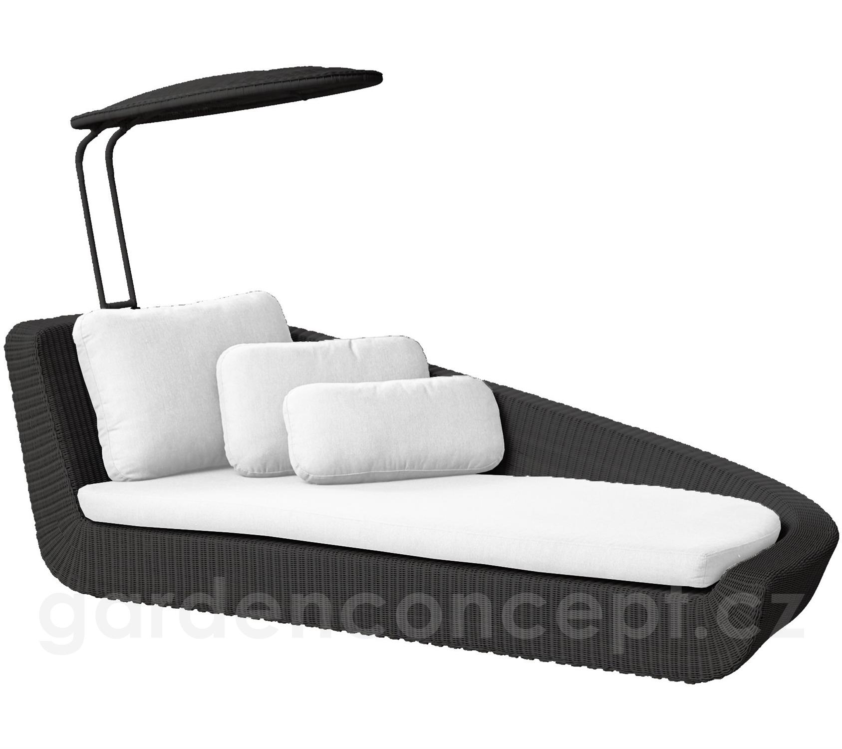 Zahradní denní postel/lehátko z umělého ratanu se sluneční clonou Savannah značky Cane-line.