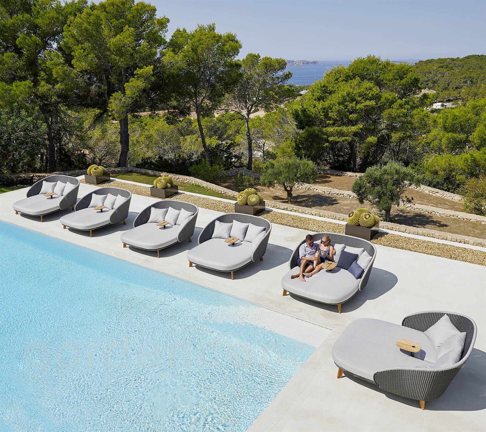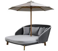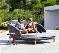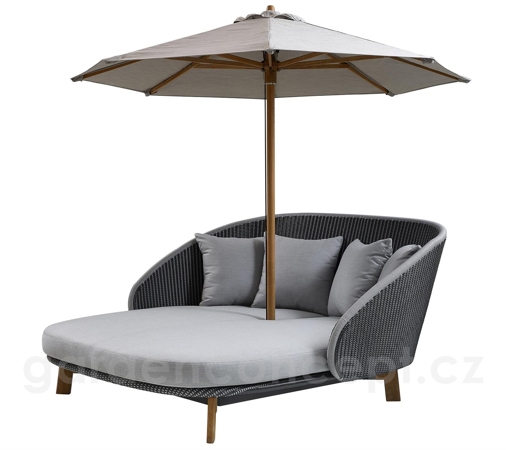 Denní postel Peacock značky Cane-line. Luxusní denní postel s módním designem má hliníkový rám, který je opleten umělým ratanem. Můžete si vybrat variantu se slunečníkem, nebo s odkládacím stolkem.