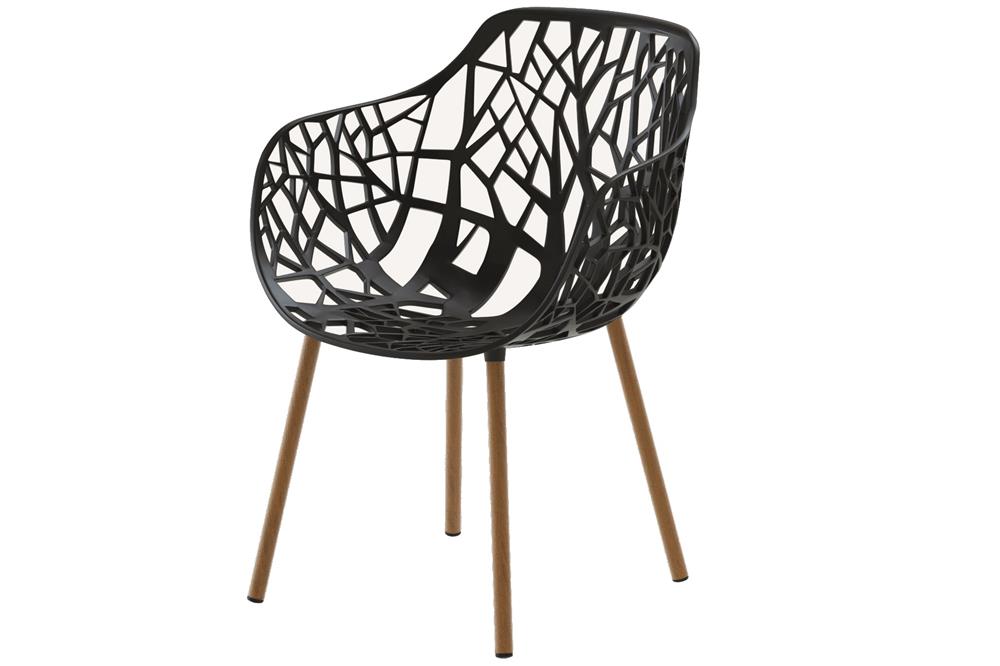 Kolekce Forest obsahuje jídelní křeslo, stohovatelnou jídelní židli a barové židle v různých provedeních - s vyšší a nižší zádovou opěrkou a různou výškou sedu.