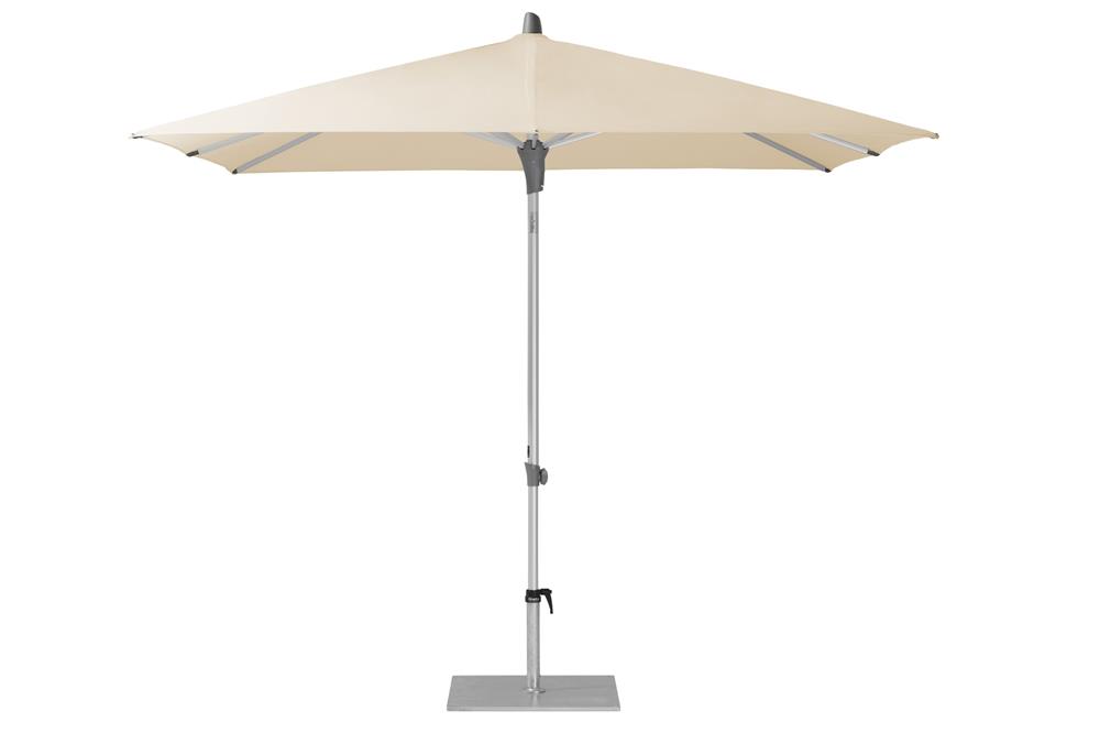 uzávěru na středové tyči. Mezi další výhody slunečníku patří: odolný rám vyrobený z eloxovaného hliníku, slunečník