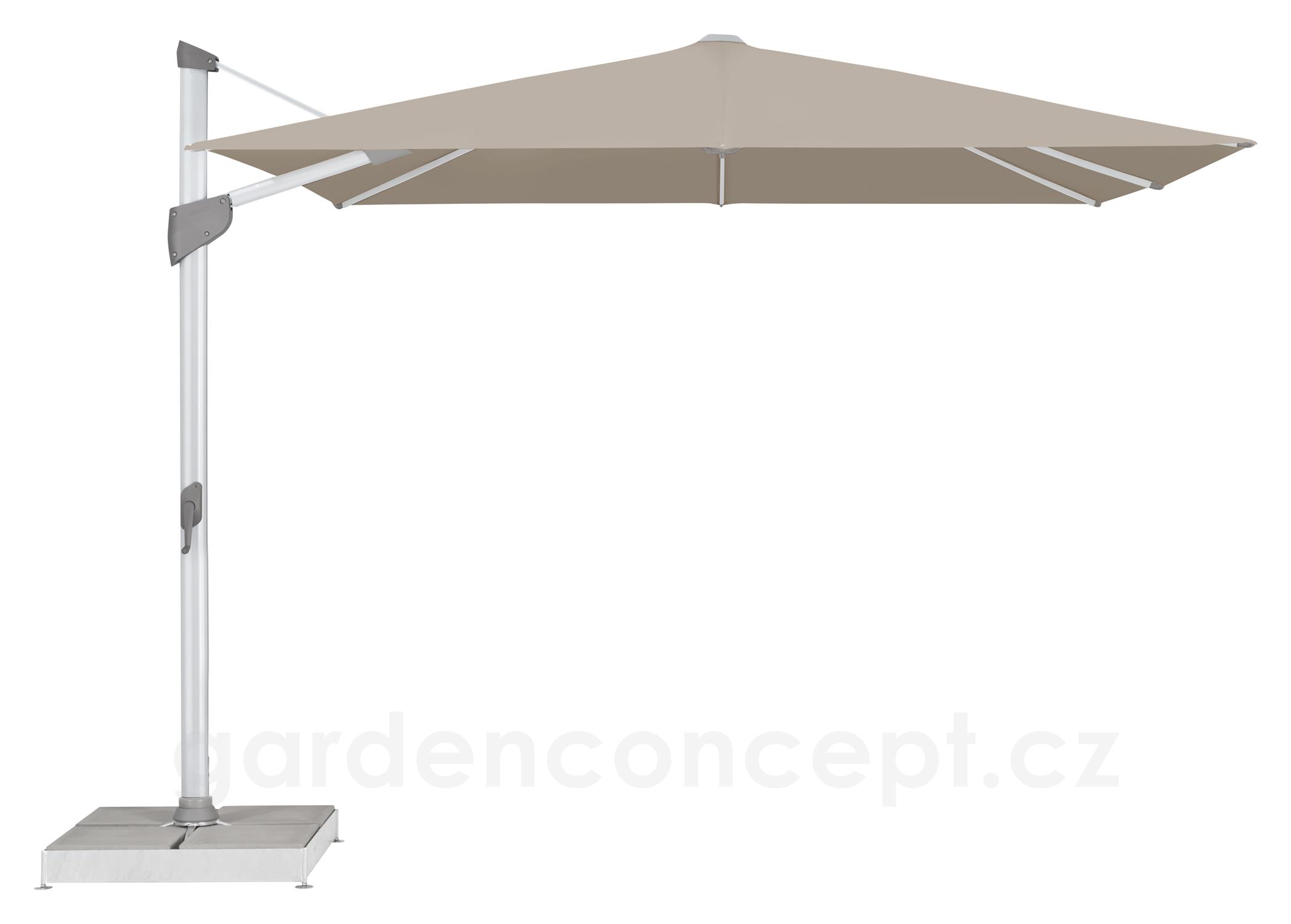 Profesionální model bočního slunečníku určeného pro privátní použití v místech se silnějším větrem nebo pro profesionální použití v restauracích hotelech, wellness apod.