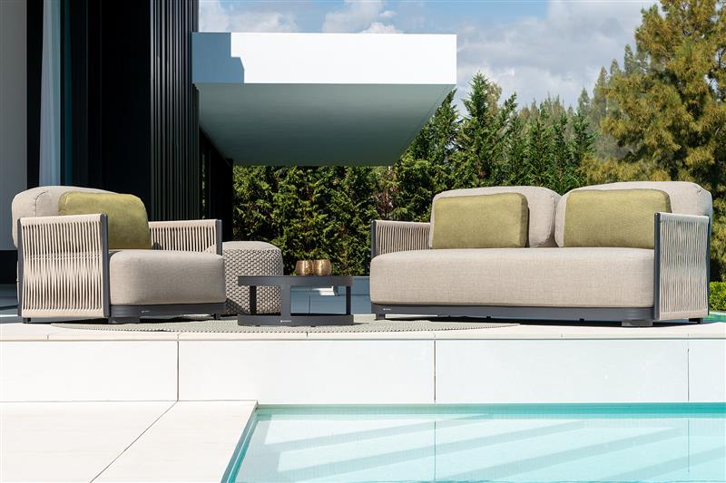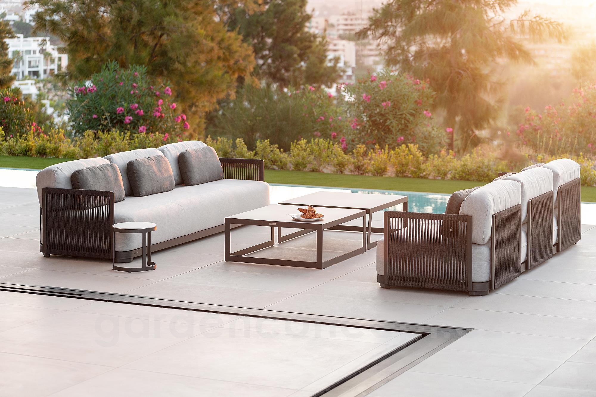 Venkovní edací sestava Durbuy s hliníkovým rámem a lankovým výpletem.