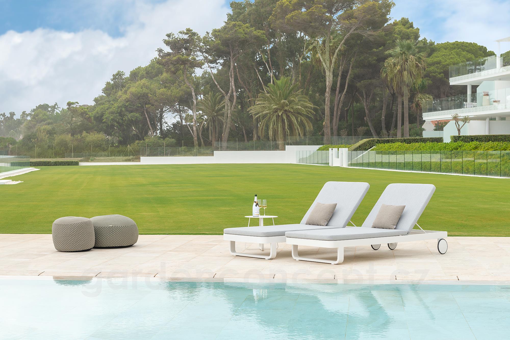 Zahradní hliníkové polohovací lehátko Durbuy od belgické značky Jati Kebon.