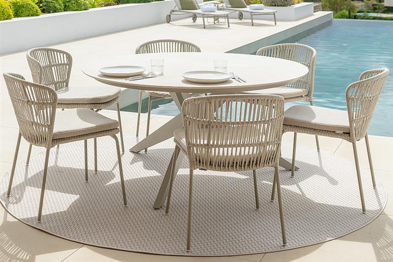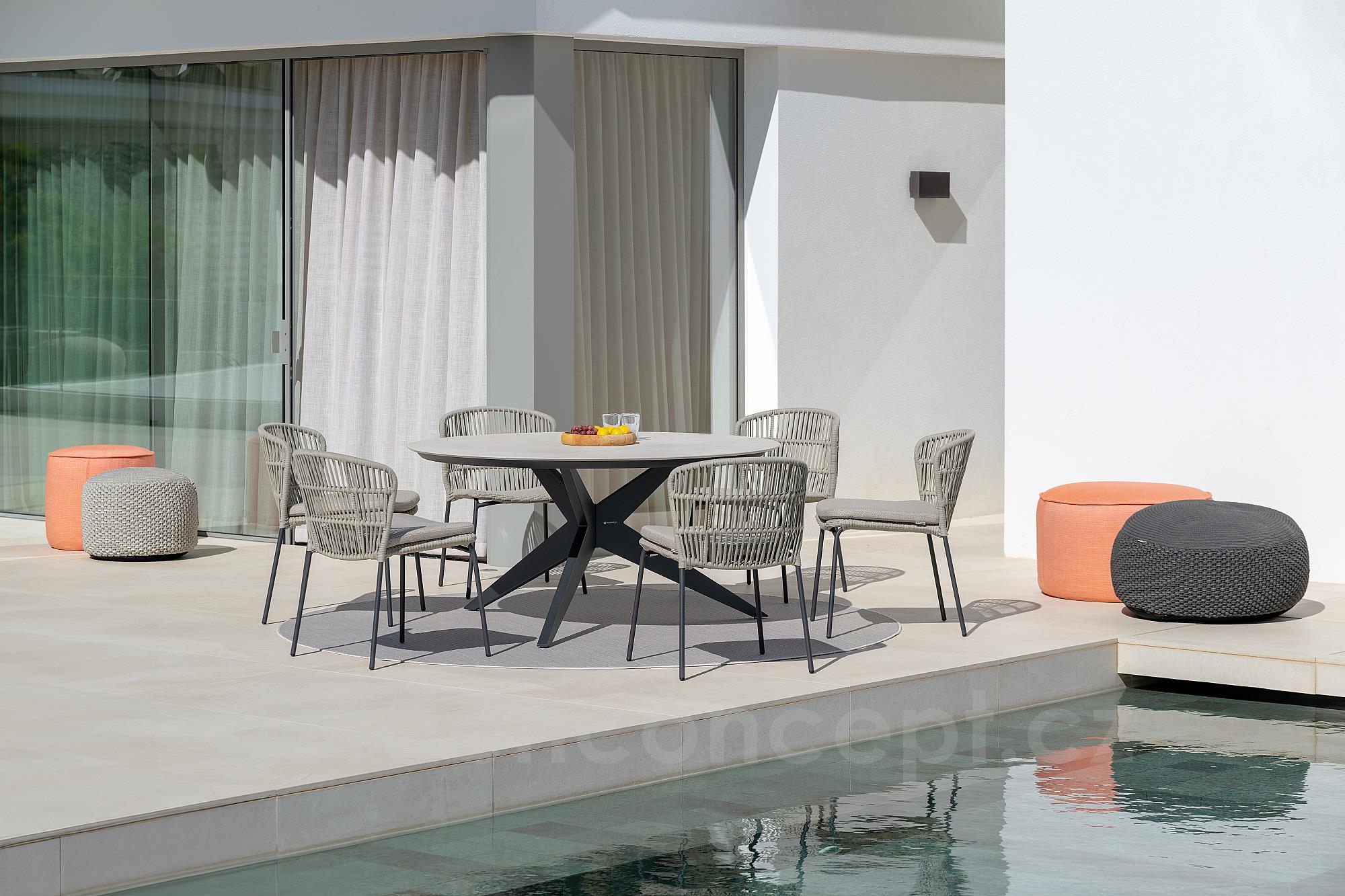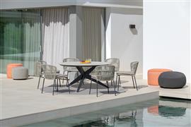 Venkovní hliníková jídelní židle s lankovým výpletem z kolekce Lima od belgické značky Jati Kebon.