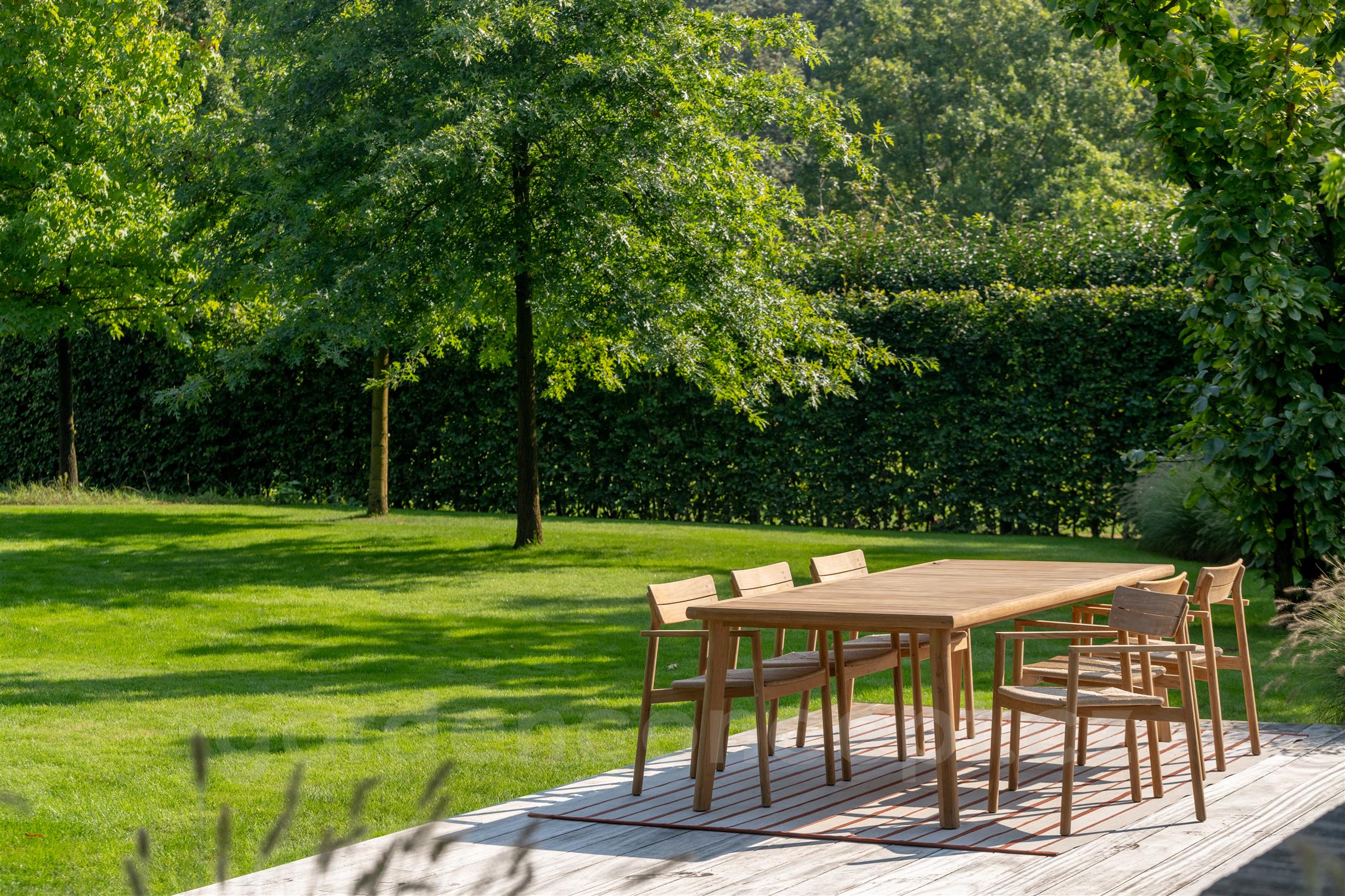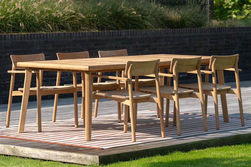 Teaková jídelní sestava z kolekce Lynn Teak od belgické značky Jati Kebon.