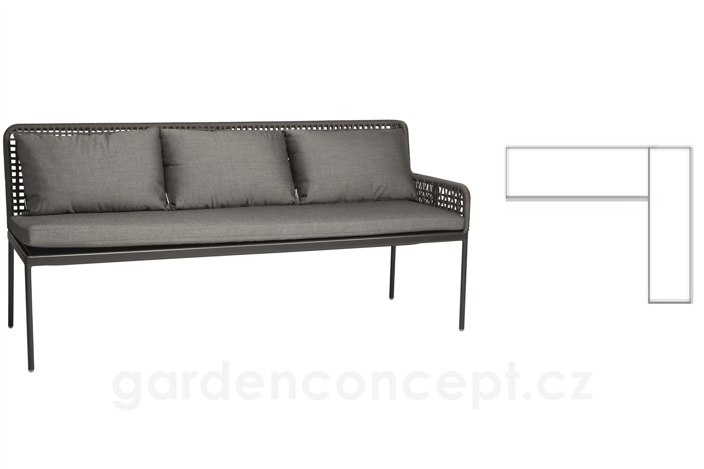 3-místná lavice bez levé opěrky a s nízkou pravou opěrkou.