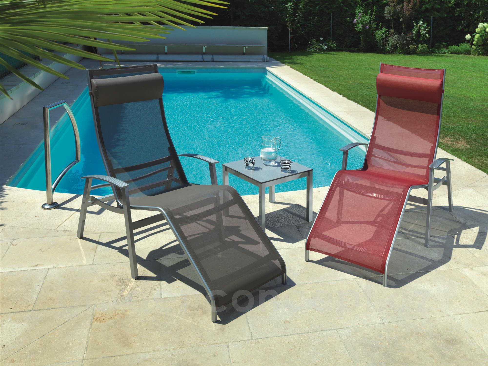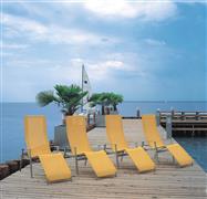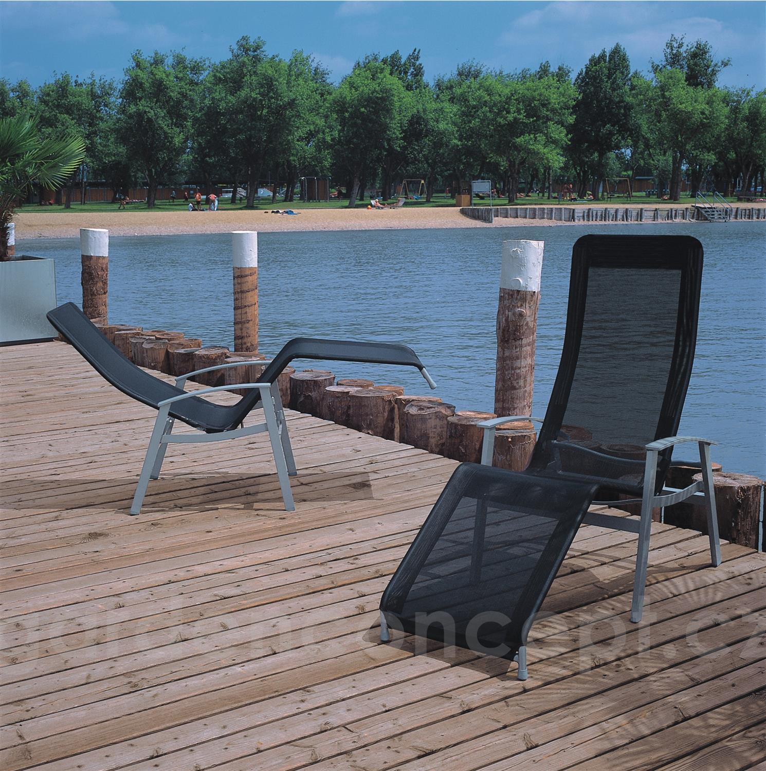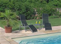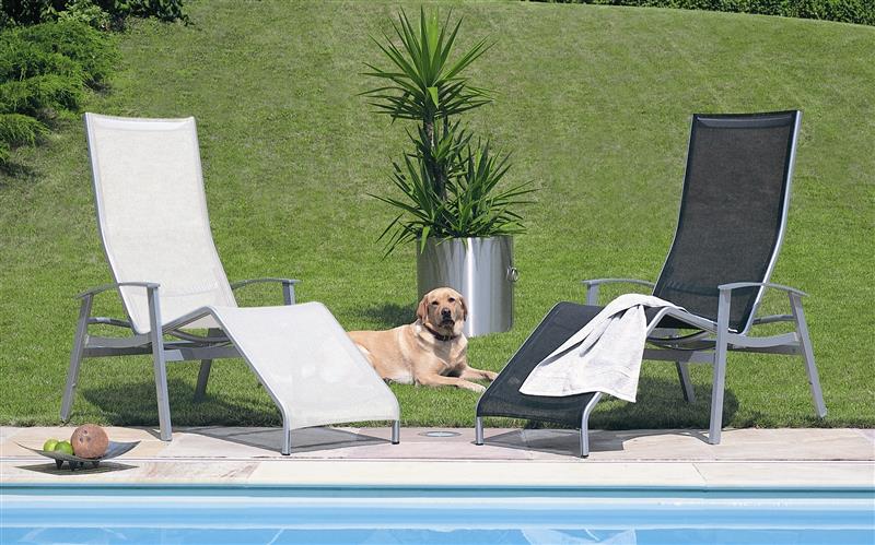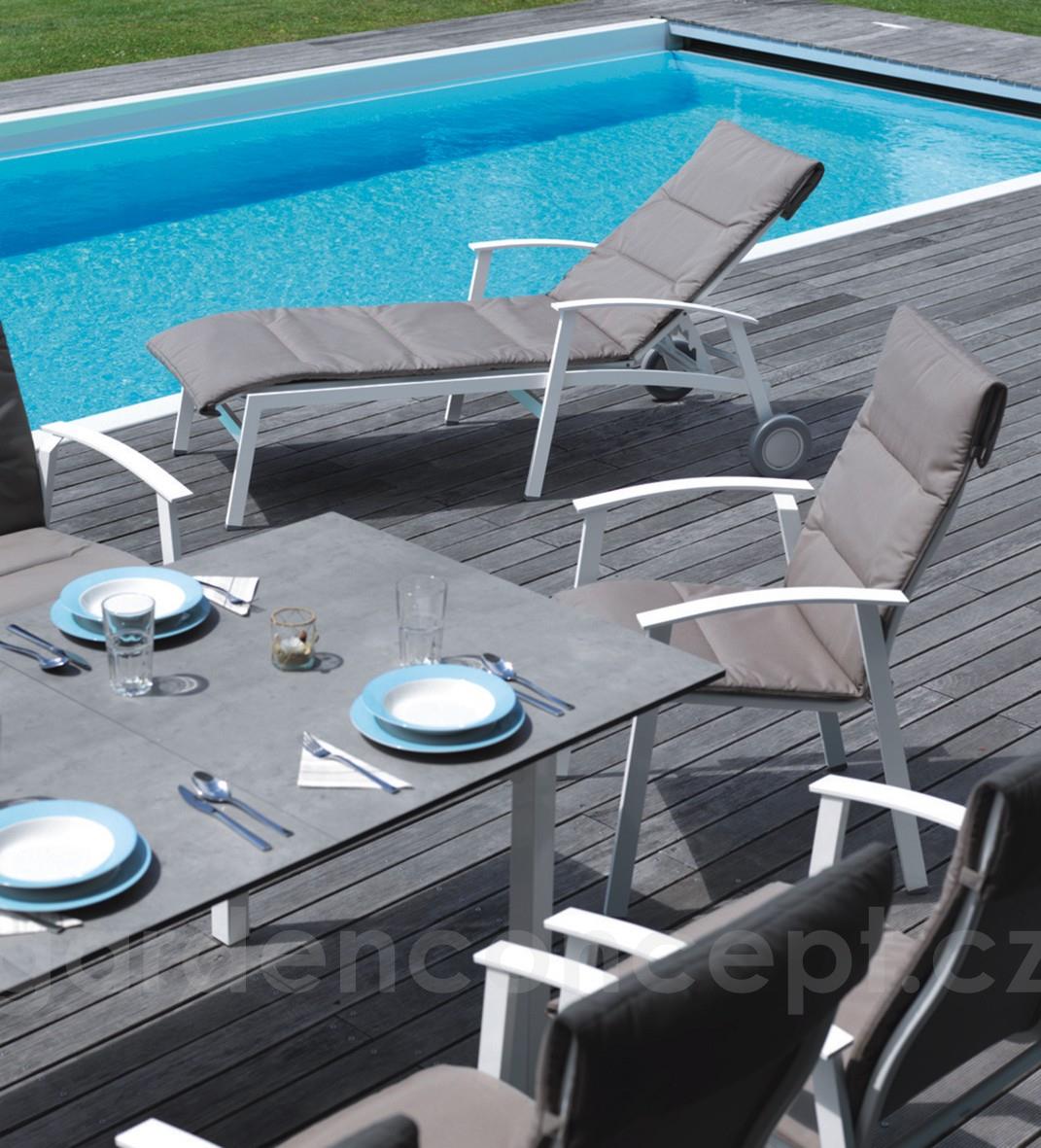Zahradní lehátka lze doplnit o jídelní křesla a podnožku