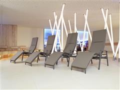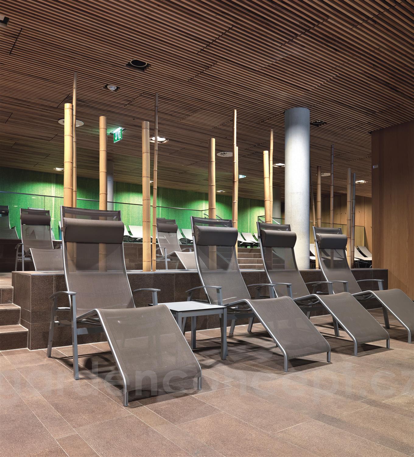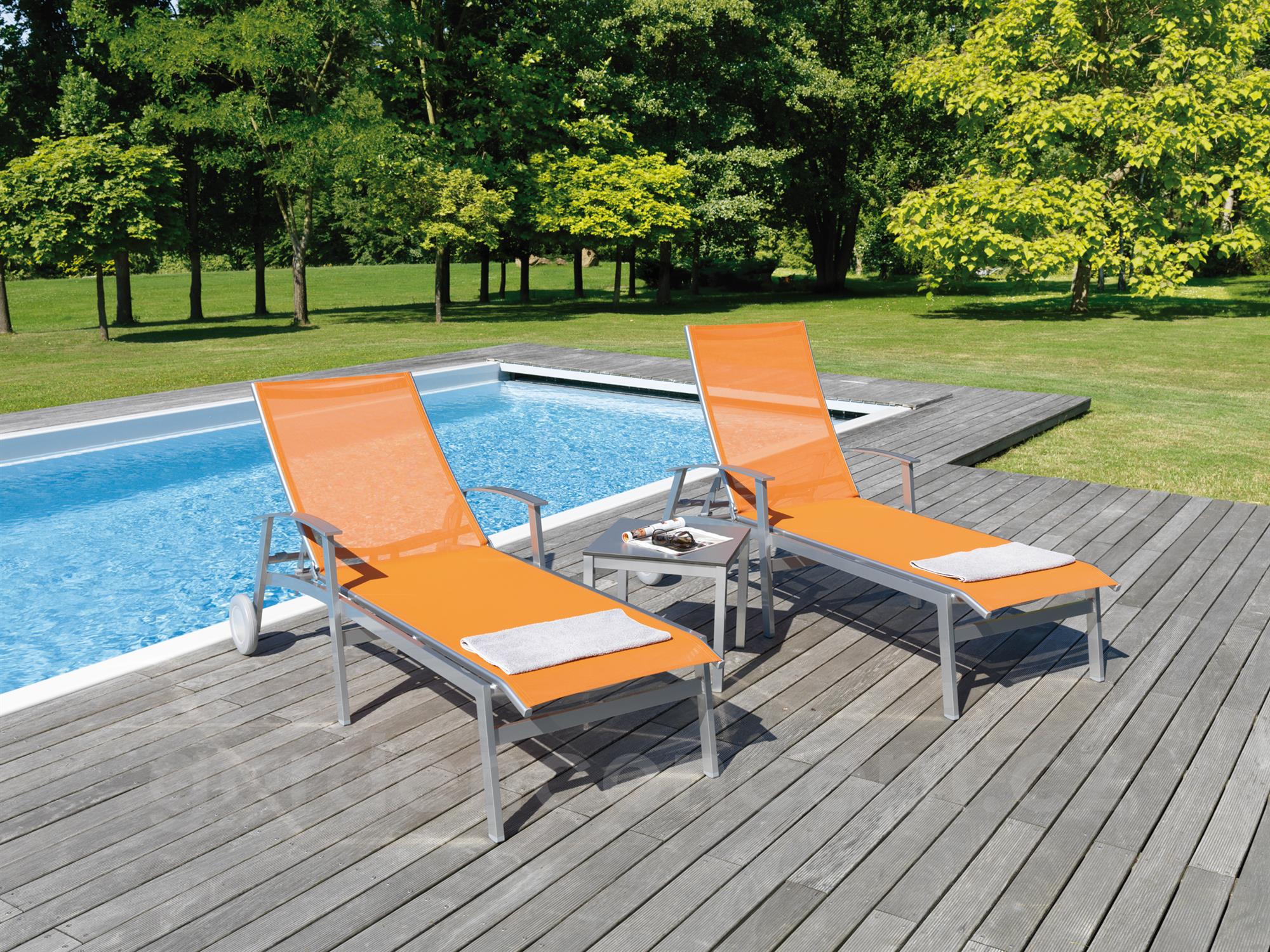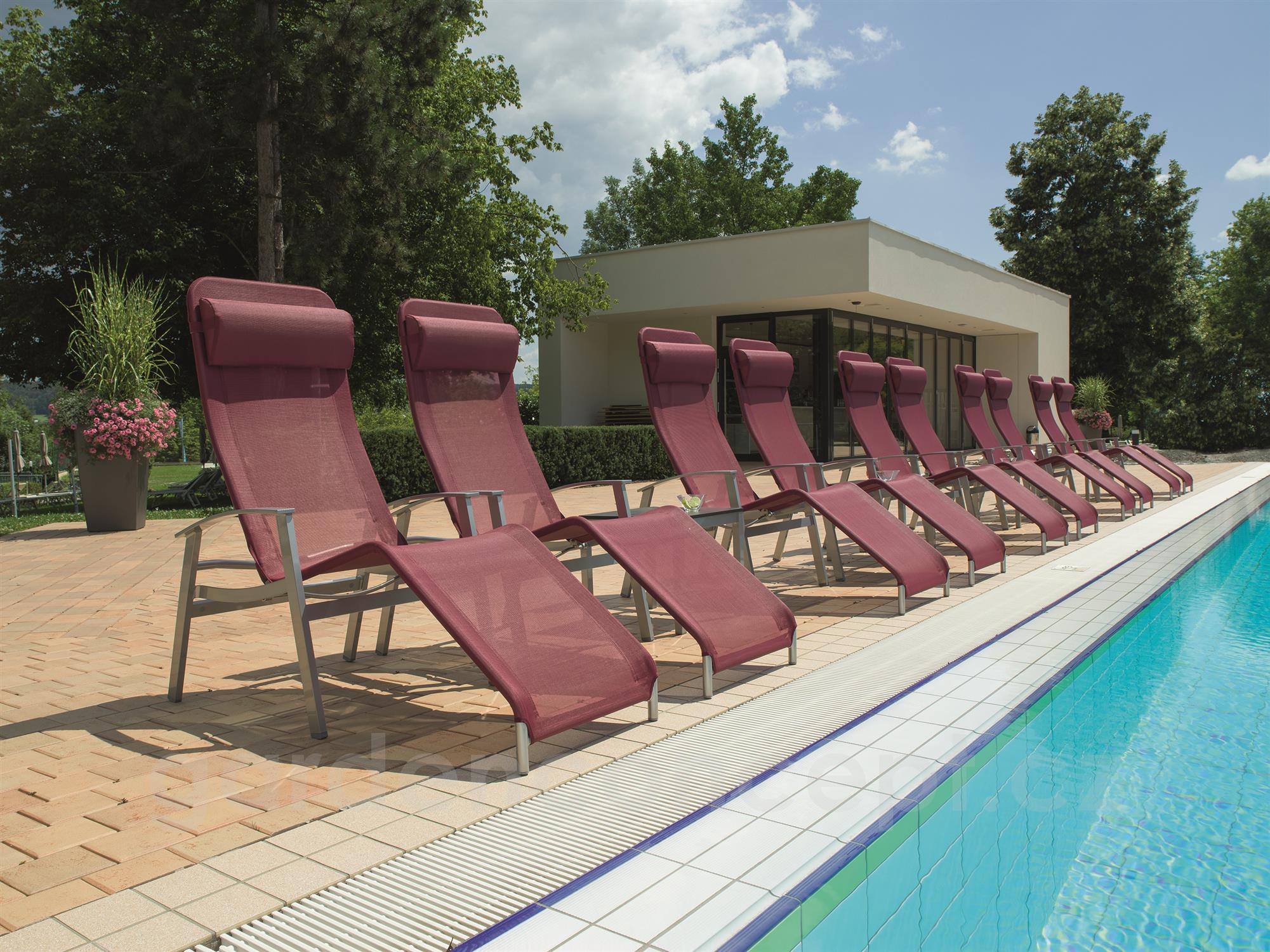 Zahradní lehátka lze doplnit o jídelní křesla a podnožku