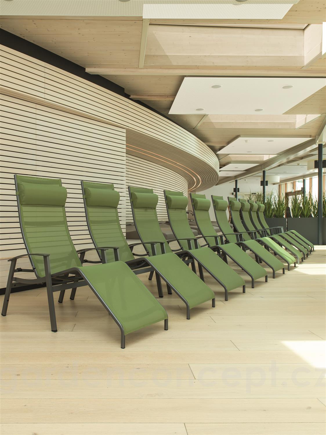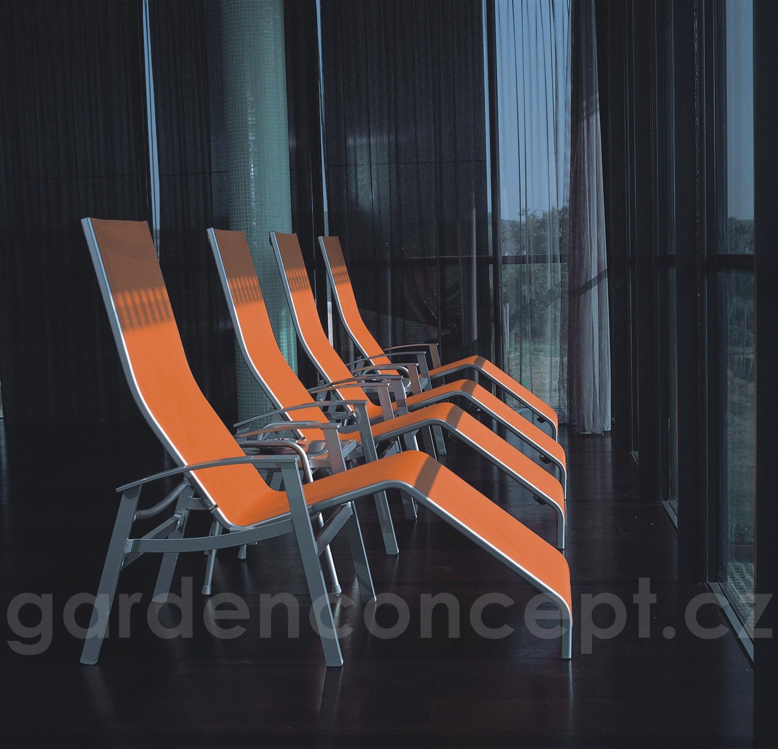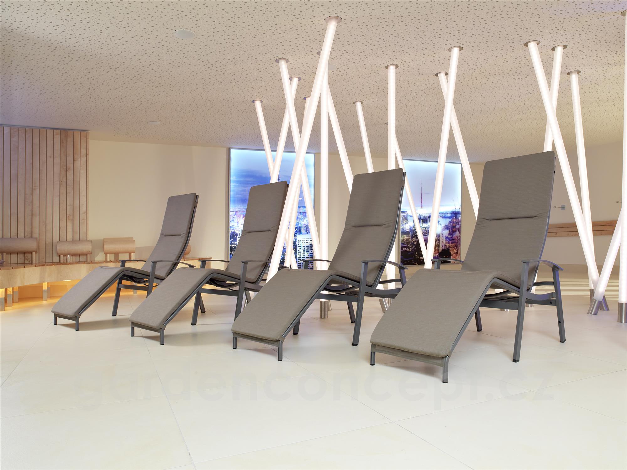 Venkovní lehátka California značky Karasek. Rám zahradních lehátek je z lakovaného hliníku, výplet je z pohodlného a pružného textilenu (Karatex). Součástí kolekce jsou různé typy lehátek - polohovací s kolečky a sklopné wellness relaxační lehátko.