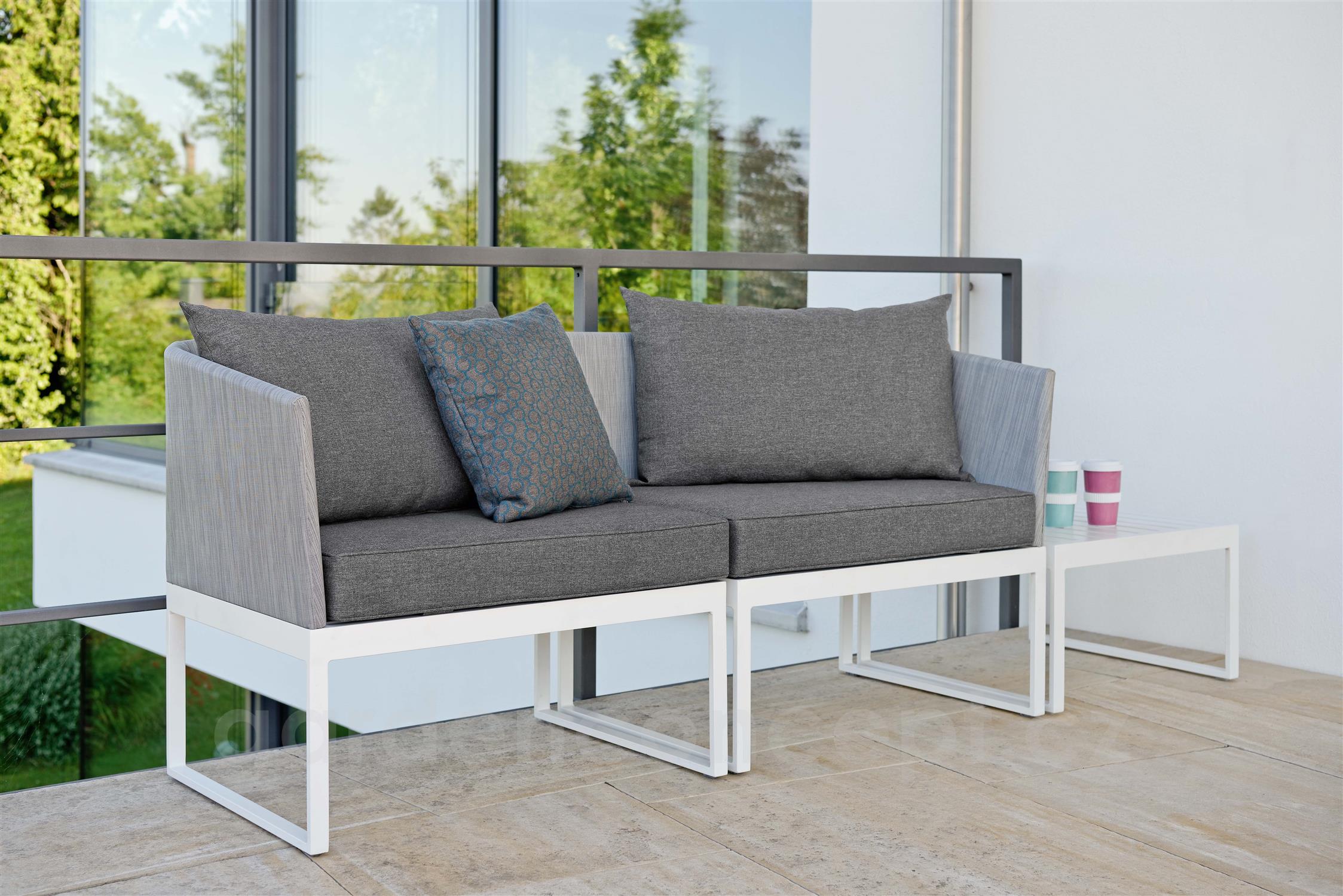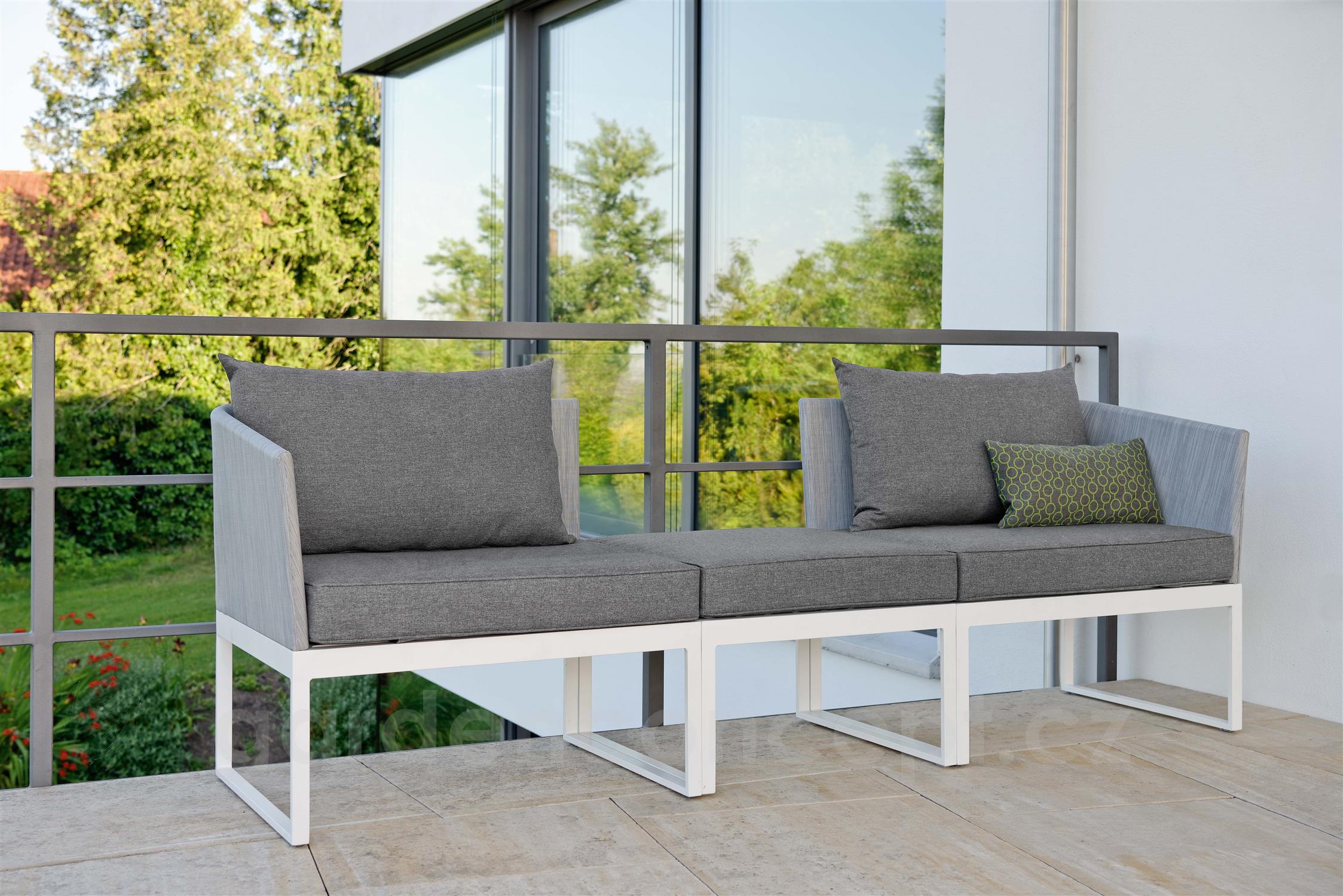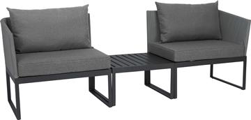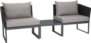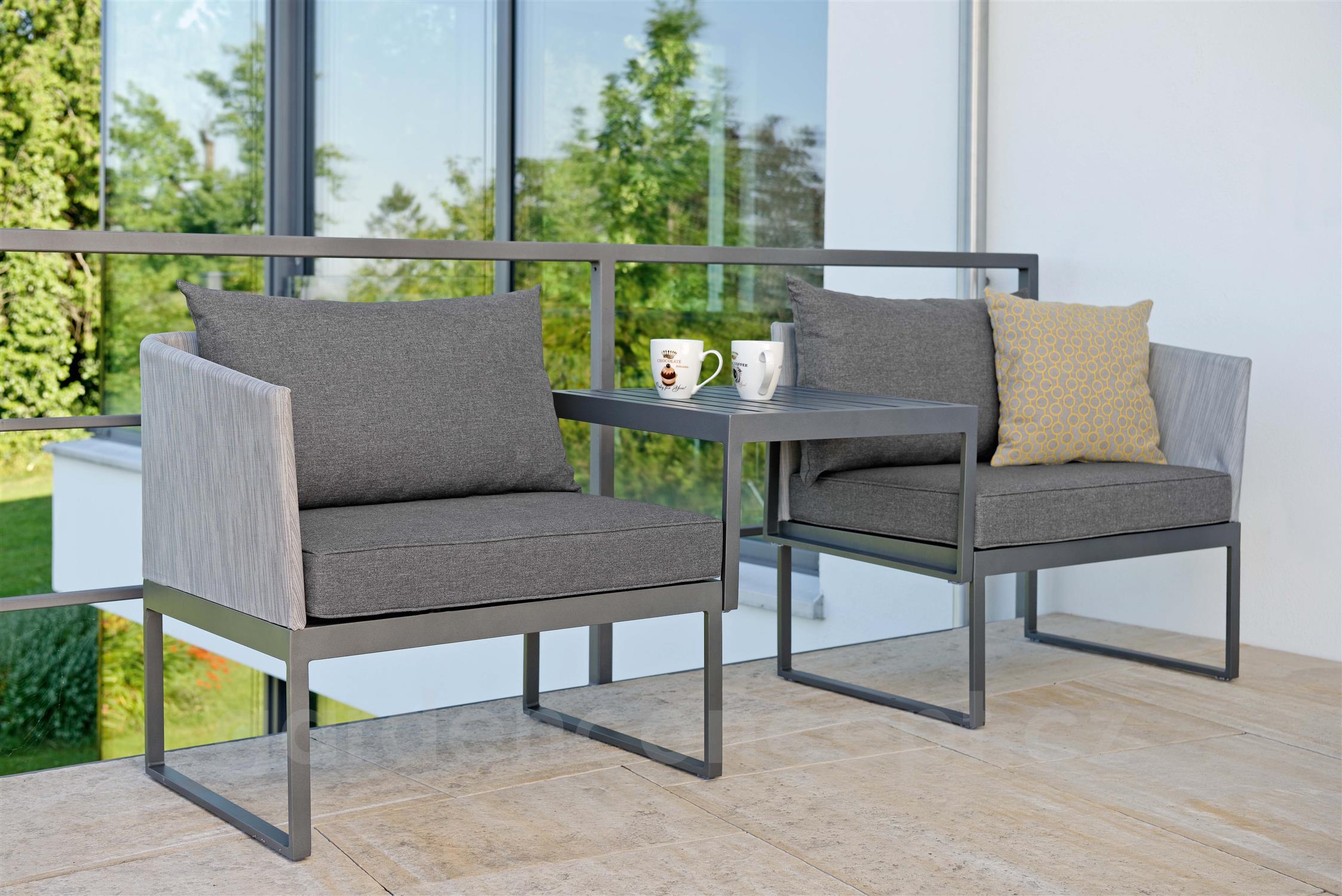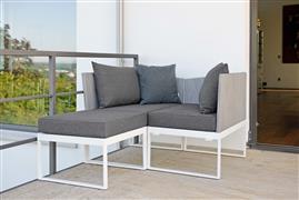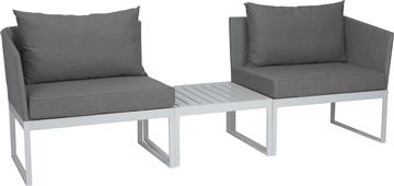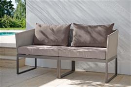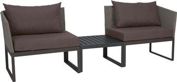 Z variabilní sedací sestavy můžete sestavit: lehátko (s polohováním zad), kávový set (zahradní křesílka se stolkem; výšku stolku lze nastavit do dvou výšek), rohovou sedací sestavu s podnožkou nebo 2-místnou pohovku. Svými rozměry je vhodná do menších prostor.