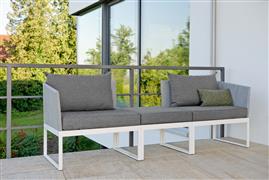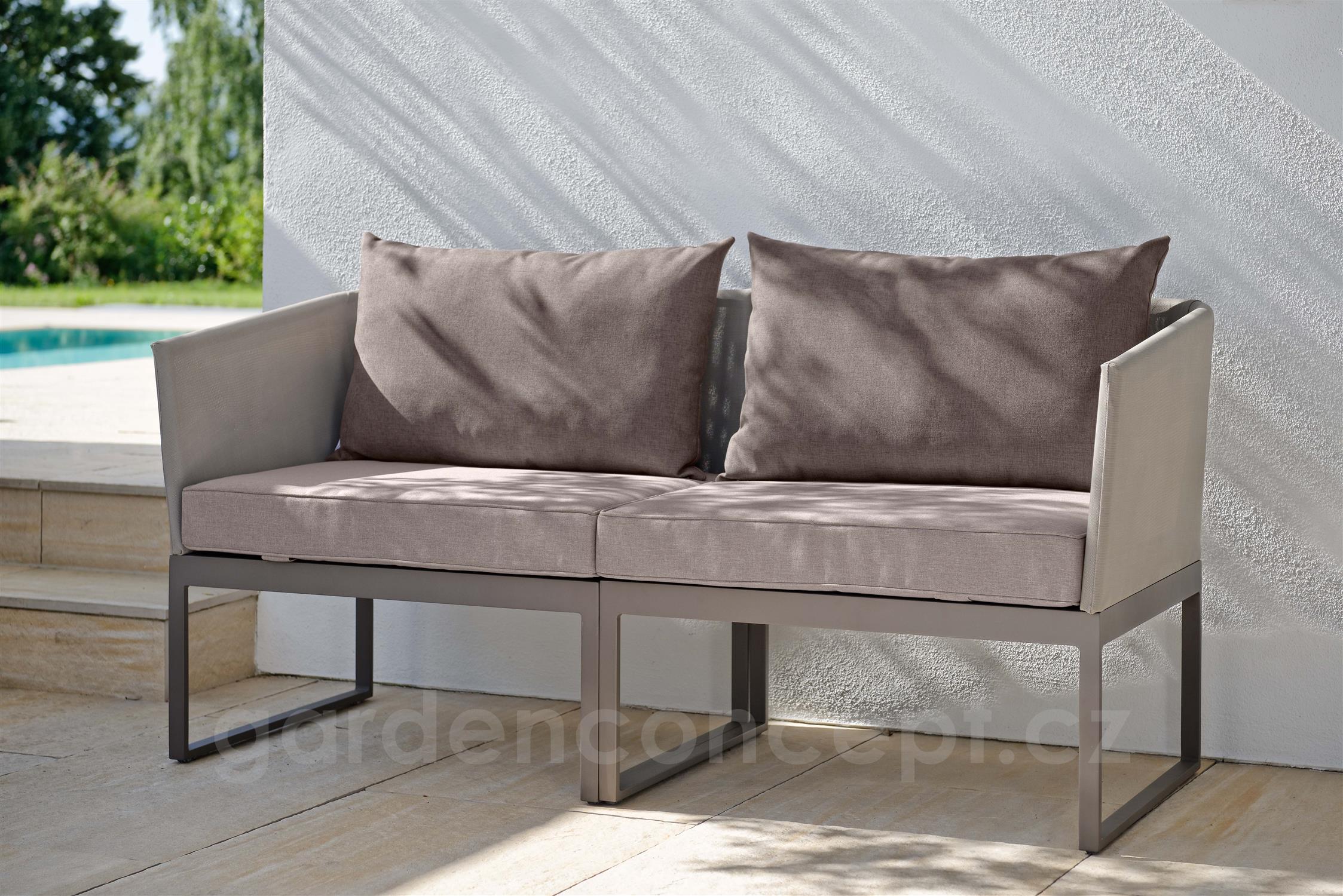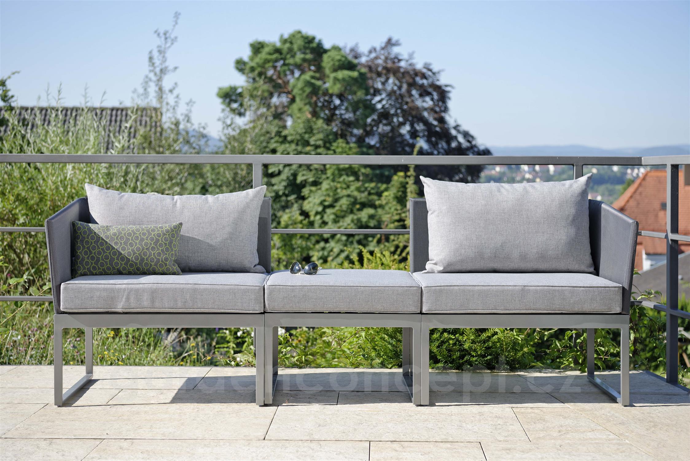Variabilní zahradní sedací sestava Donna od značky Stern. Zahradní sestava má lakovanou hliníkovou konstrukci, textilenové opěrky a sedáky s opěrnými polštáři z venkovní látky. Výplně polstrů z běžné pěny - nutné chránit je před deštěm. V nabídce v několika barevných provedeních.