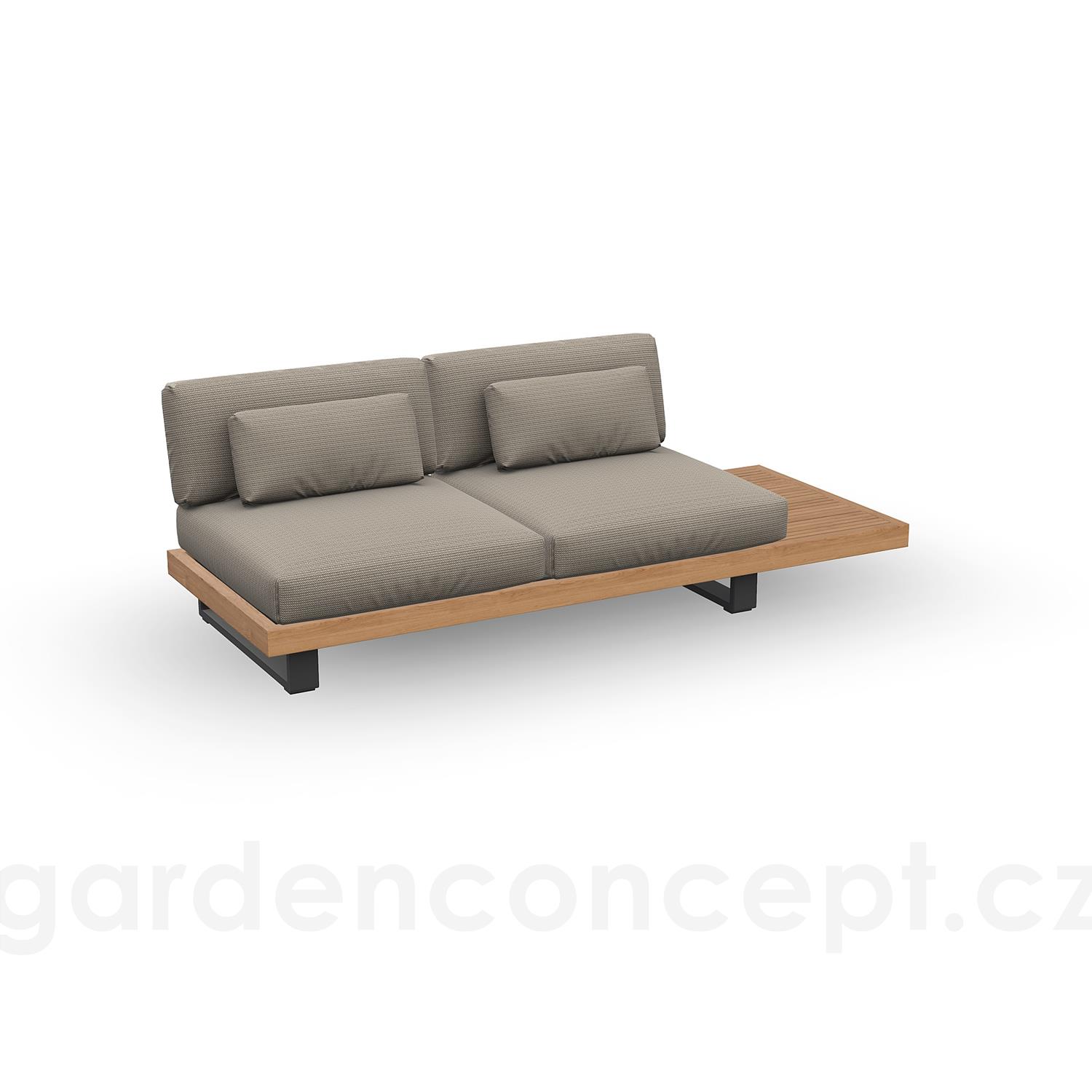 Ukončovací díl 2-místný s odkládacím stolkem Truro, Jati Kebon, 230x90x60 cm, rám teak/hliník barva charcoal mat, bez polstrů