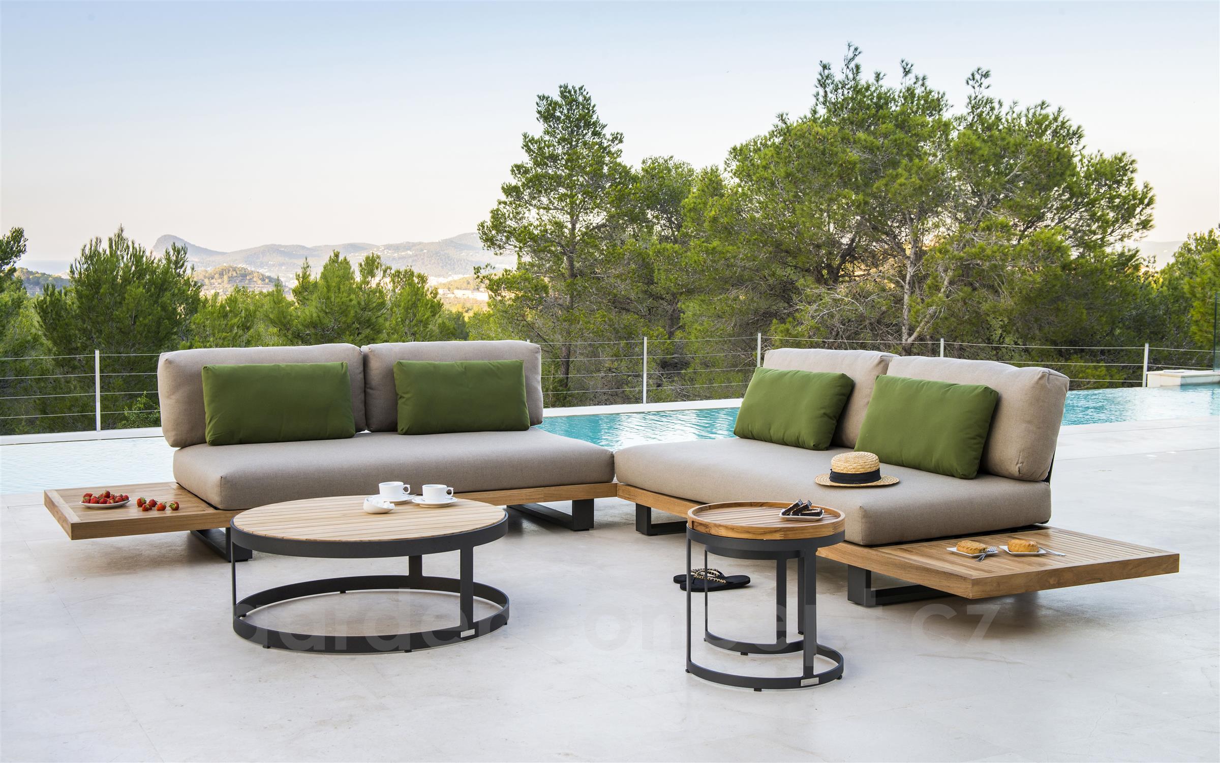 K dílu je nutné doobjednat 2x sedák a opěrný polštář, které nejsou součástí. Sedák a opěrný polštář jsou z venkovních odolných látek a rychleschnoucí výplně.