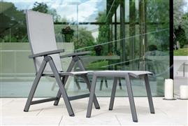 Zahradní podnožka Allround od značky Stern. Podnožka má hliníkovou konstrukci a textilenový výplet.
