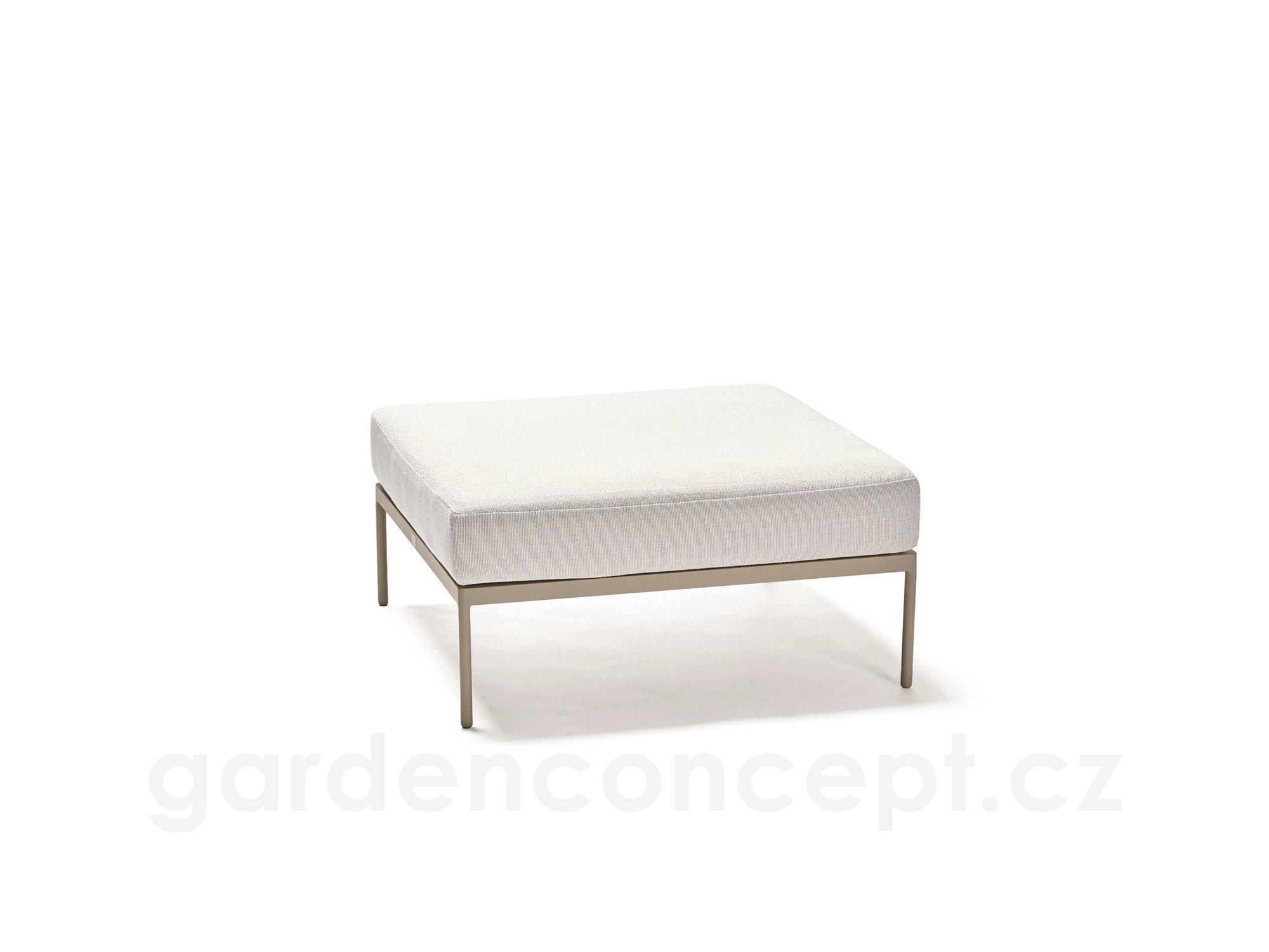 Podnožka Coco, Stern, 82x82x39 cm, rám lakovaný hliník šedobéžový (greige), výplet textilen sesame, venkovní látka Ivory (100% akryl)