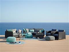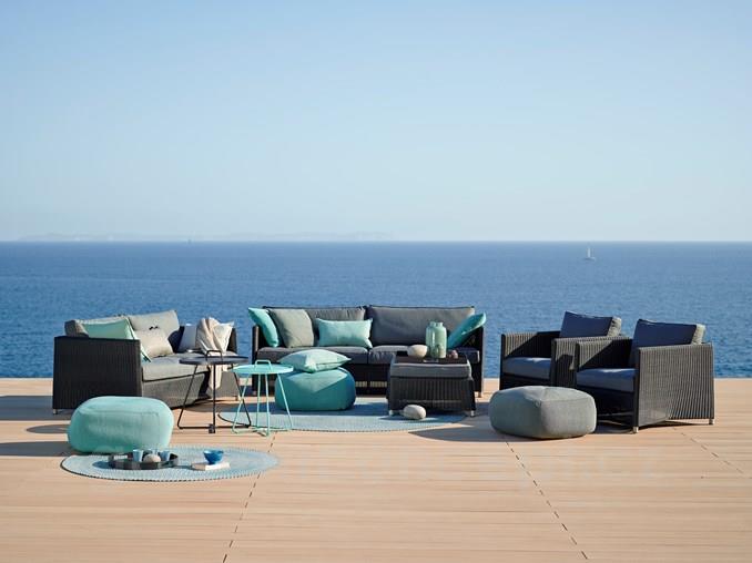 Podnožka Diamond, Cane-line, 70x70x40 cm, rám hliník, výplet umělý ratan barva graphite, sedák venkovní látka Natté grey