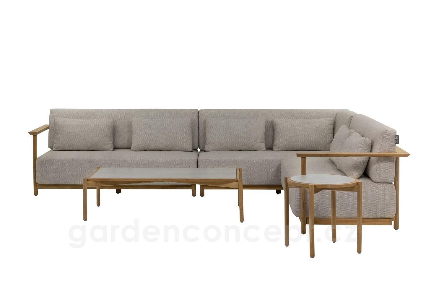 Rohová sedací sestava St.Lucia, Apple Bee, ca 320x240 cm, teak/venkovní sedáky