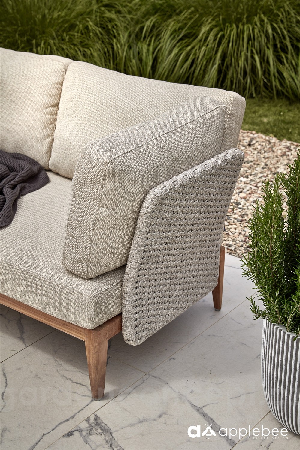 Rohový díl Lisa, Apple Bee, 81x81x66 cm, rám teak natural, výplet lanko Natural Oak, sedáky venkovní látka Olefin Natural Oak