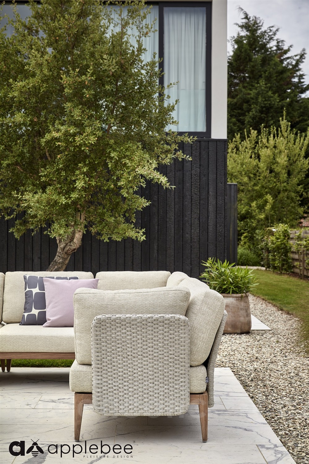 Sedák a polštář z kvalitní venkovní látky s výplní z rychleschnoucí pěny.