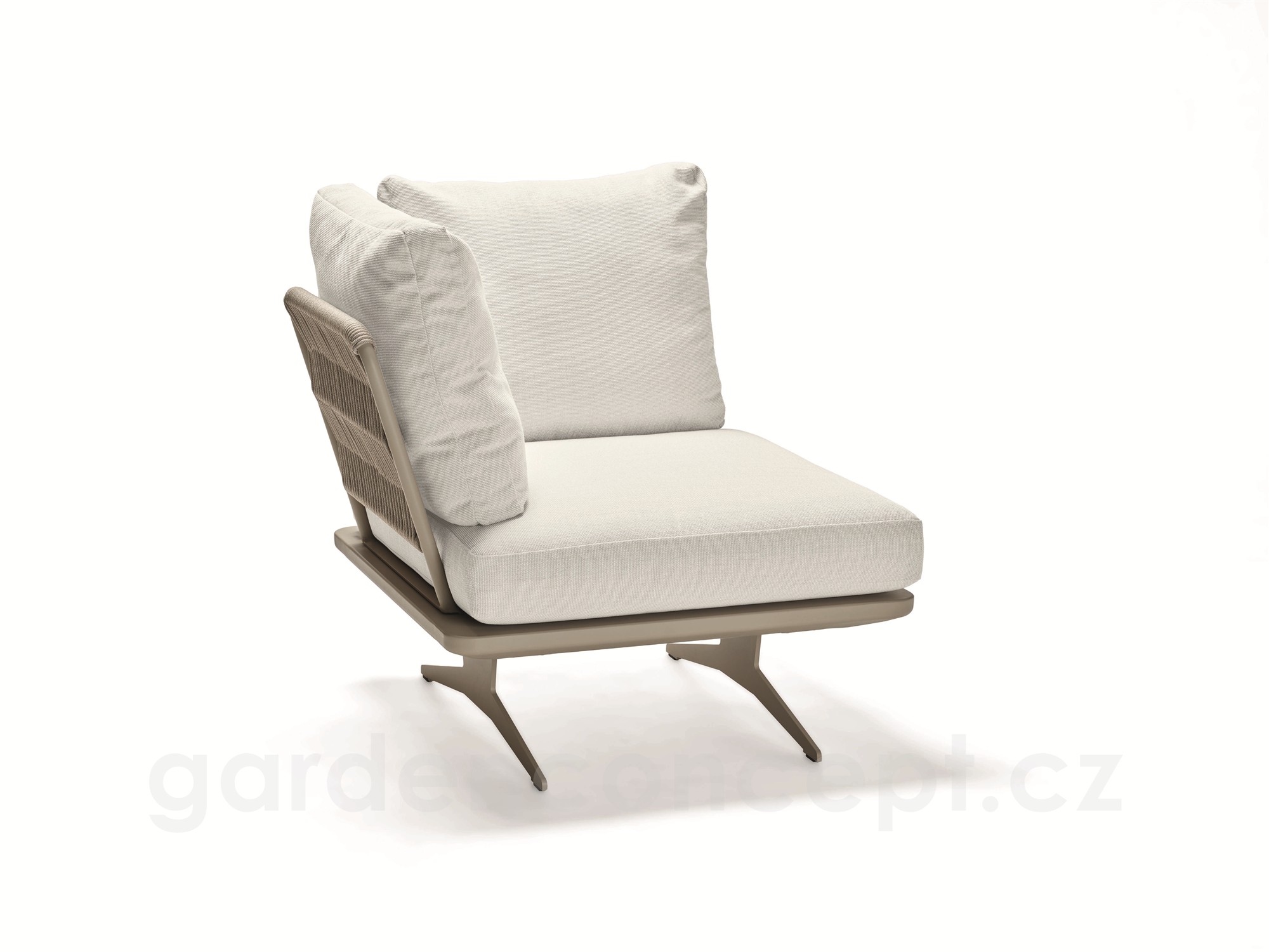 Rohový díl 1-místný Enya 95x95x85 cm, Stern, rám hliník barva Greige, vč. zádových opěrek s lankem Greige (2ks), sedák a polštáře (2ks) potah Ivory (100% akryl)