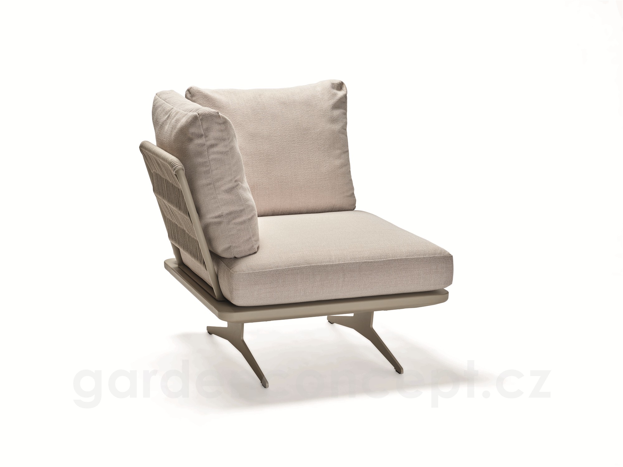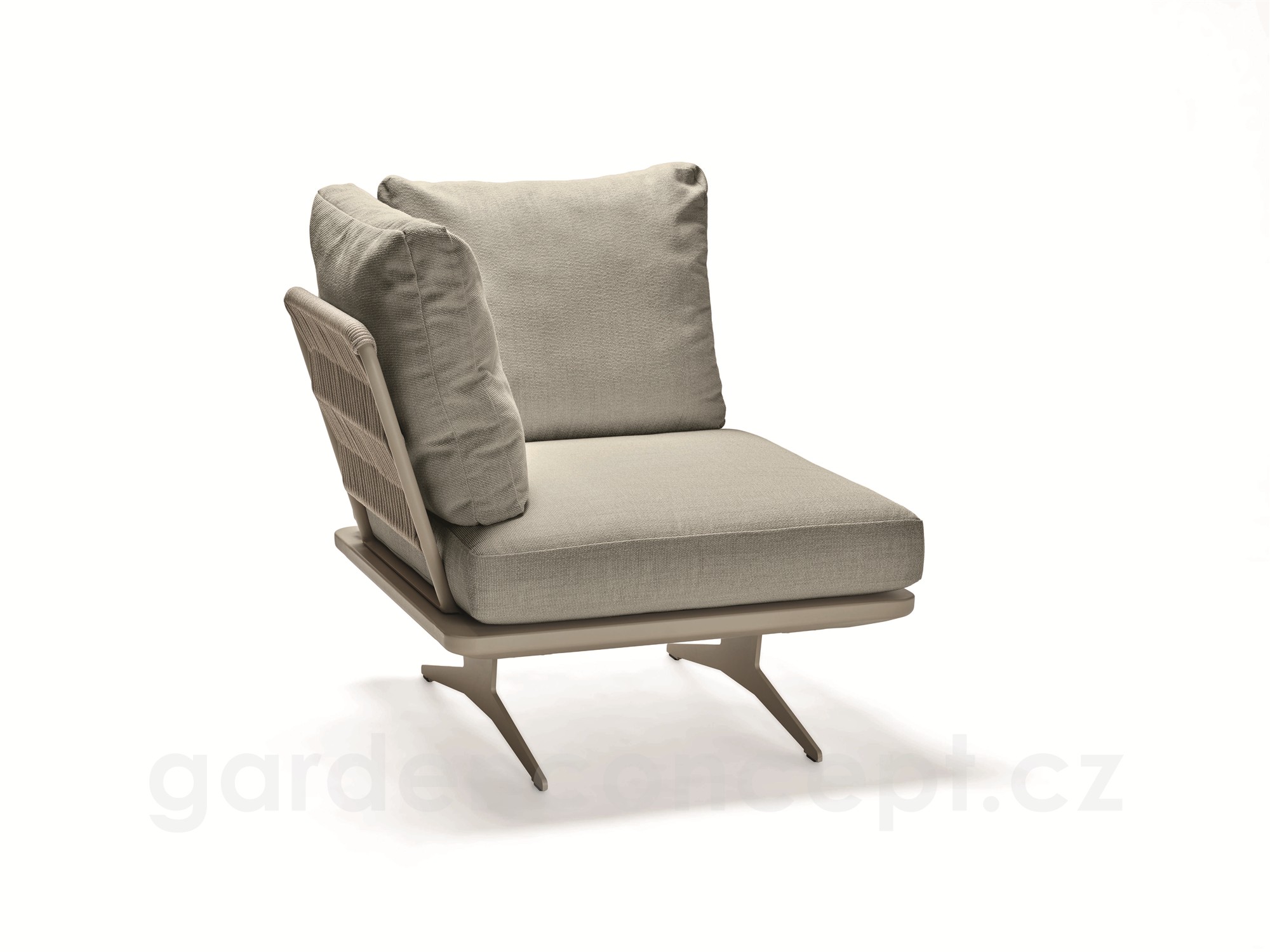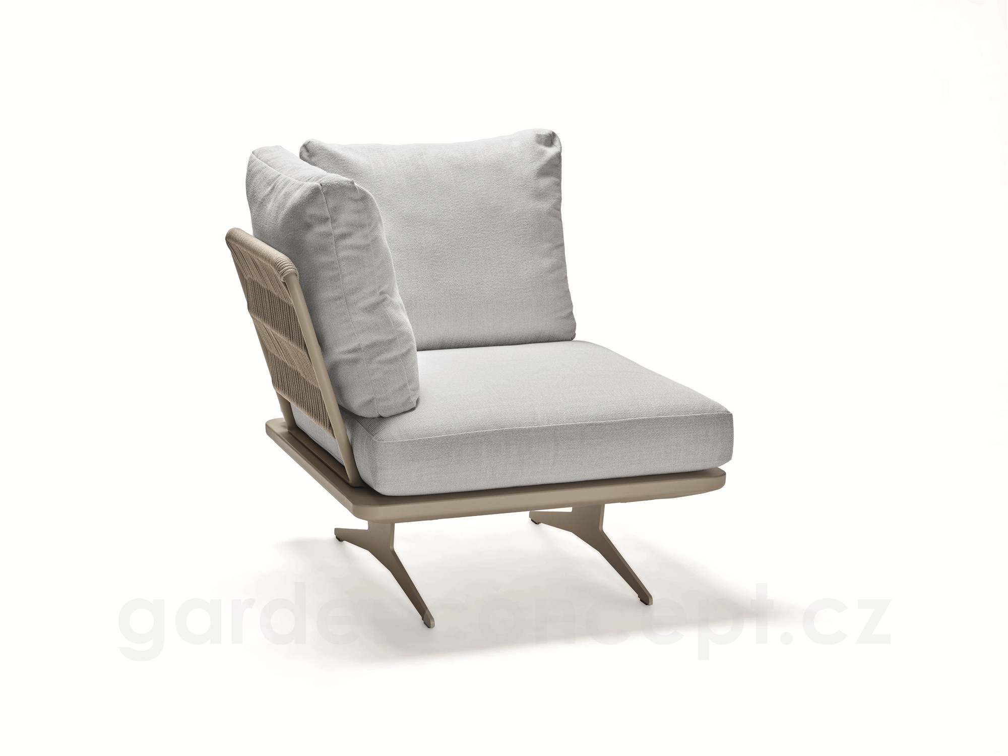 Rohový díl 1-místný Enya 95x95x85 cm, Stern, rám hliník barva Greige, vč. zádových opěrek s lankem Greige (2ks), sedák a polštáře (2ks) potah Macchiato (100% akryl)