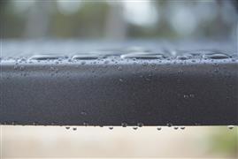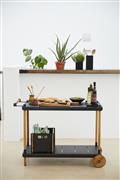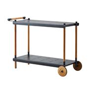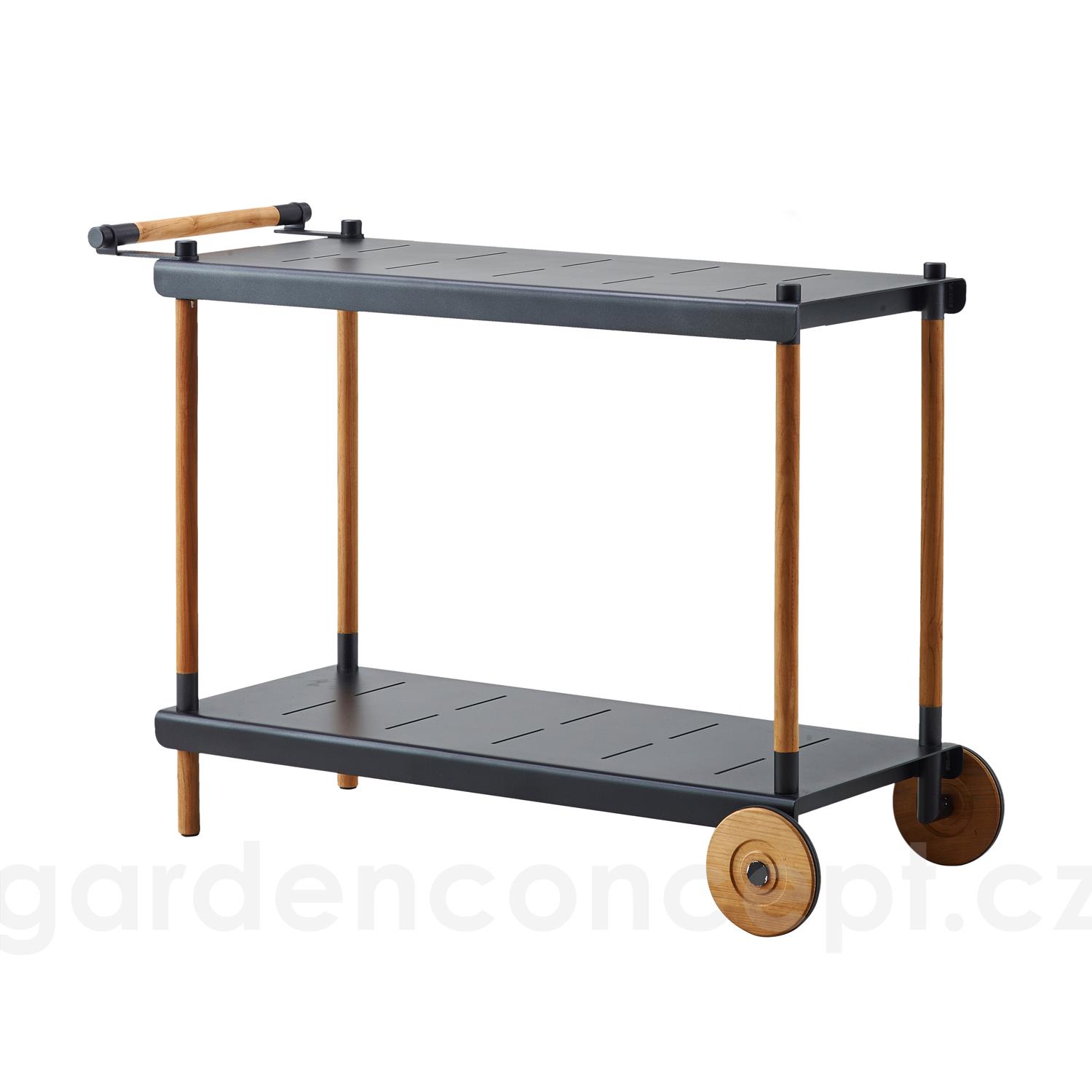 Zahradní servírovací vozík kolekce Frame značky Cane-line. Rám vozíku je z teakového dřeva. Police jsou z hliníku v šedočerné barvě (lava-grey).