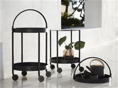 Servírovací vozík s kolečky Roll, Cane-line, kulatý 44x78 cm, rám hliník barva lava grey