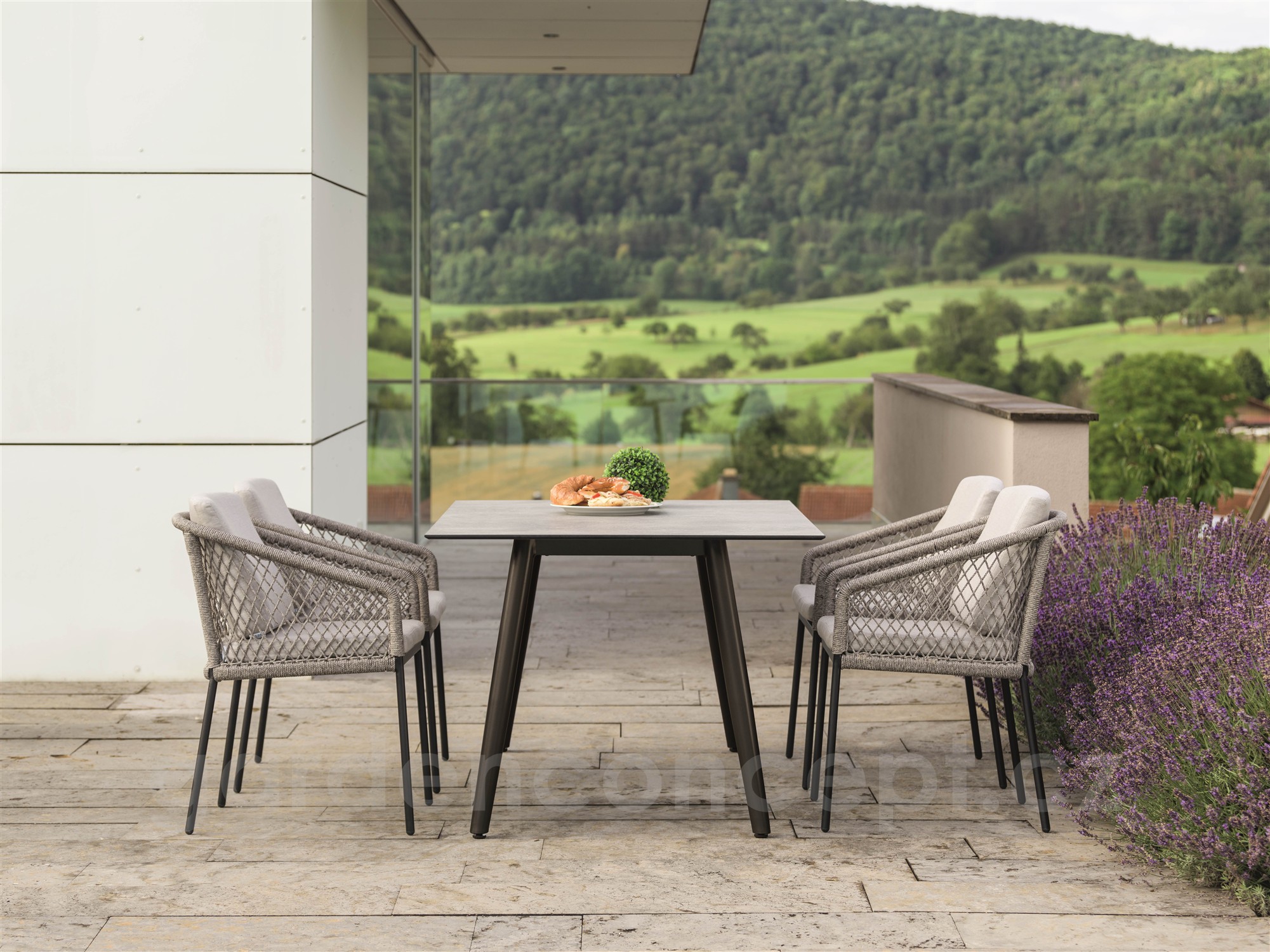 Interno jsou variabilní, moderní venkovní jídelní stoly na zahradu nebo terasu s podnoží z volitelného materiálu a barvy, desky jsou k dispozici z různých materiálů a barev včetně přírodního teaku.