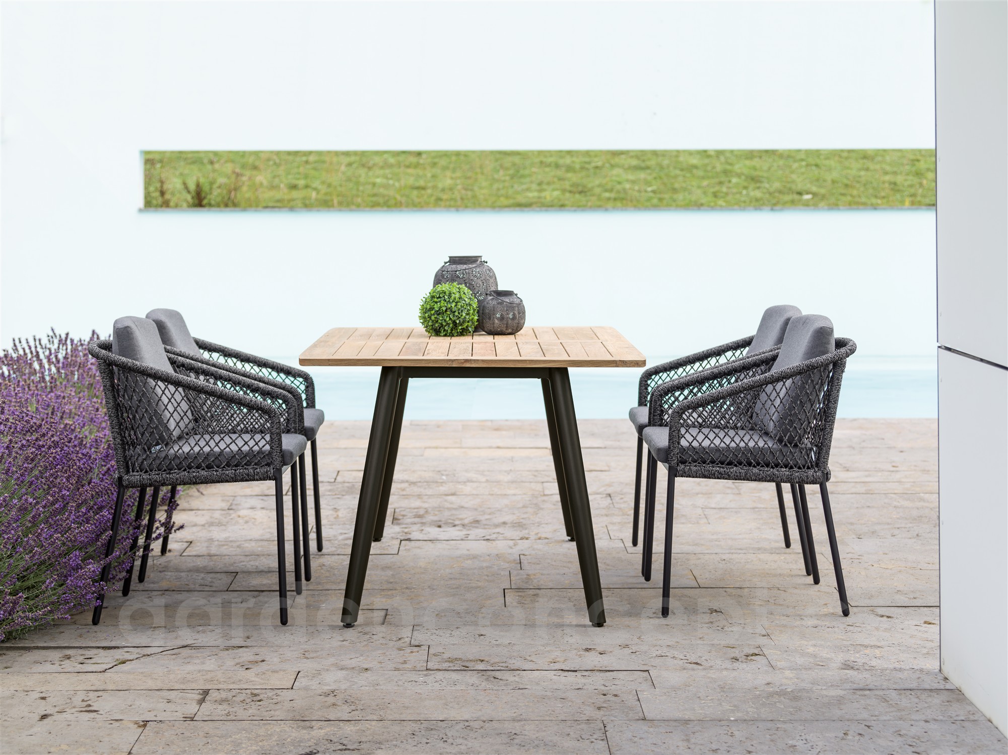 Stůl Interno, Stern, 180x100 cm, hliník čtvercový profil, deska teak