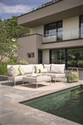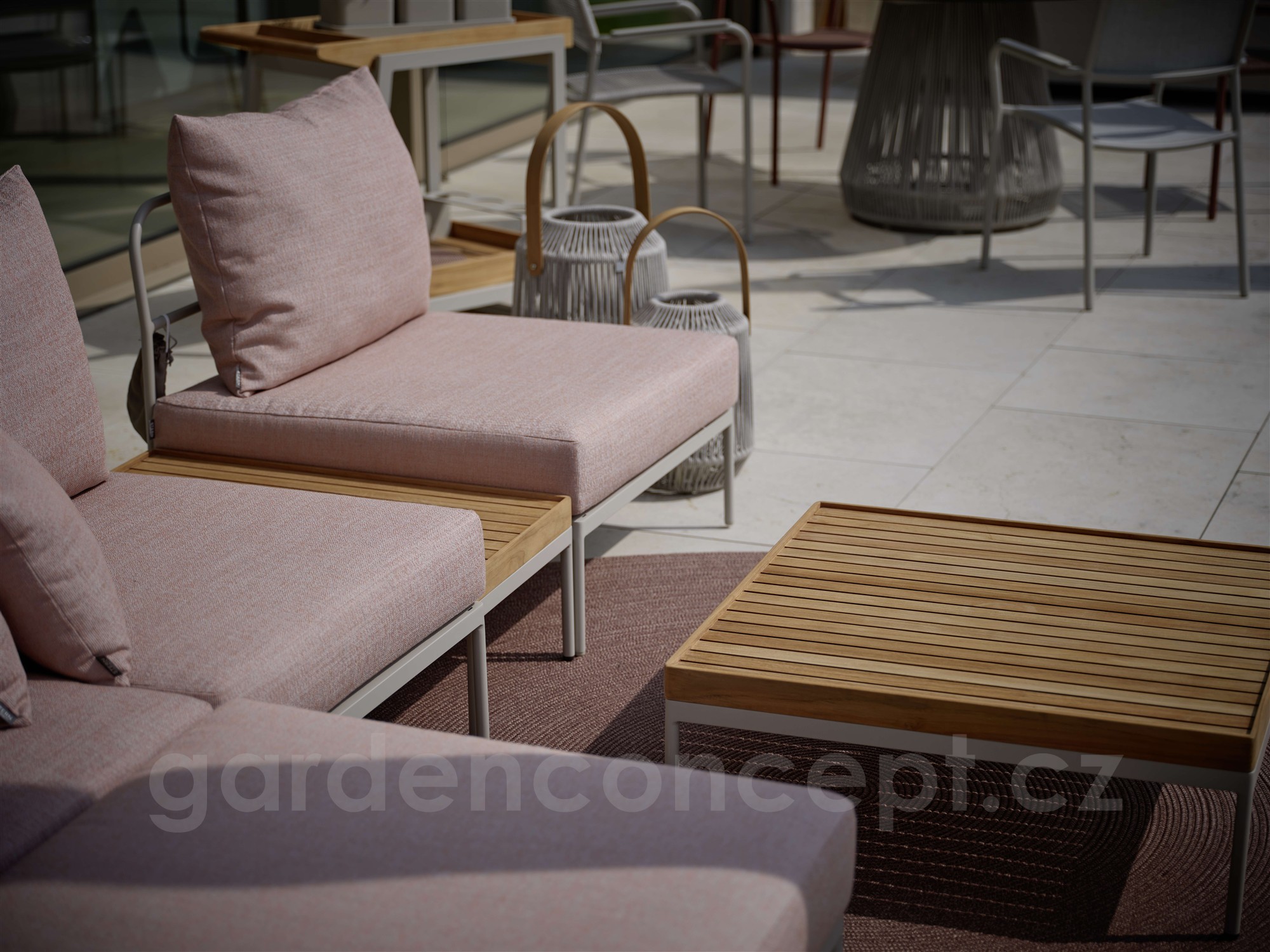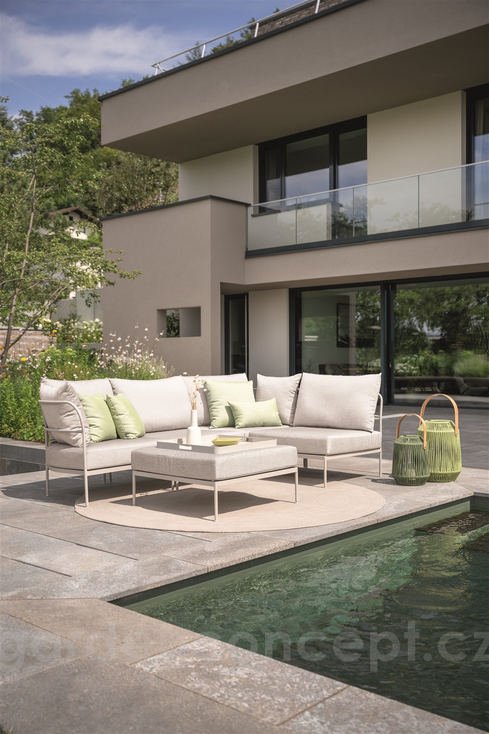 - Sedáky a opěrné polštáře: potah venkovní látka (100% akryl), výplň běžná pěna (nutno je chránit před větším deštěm.) Potahy jsou snímatelné a pratelné.