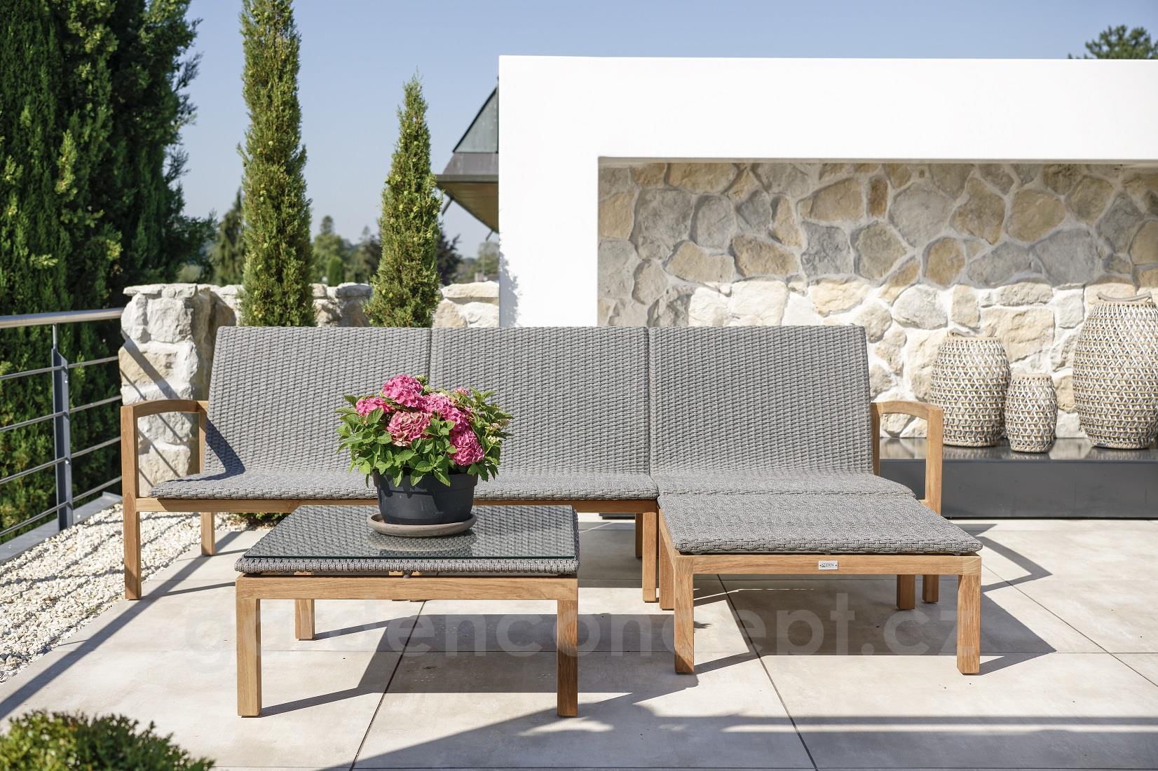 - K dispozici sedáky a opěrné polštáře: potah venkovní látka (100% akryl), výplň běžná pěna (nutno je chránit před deštěm.) Potahy jsou snímatelné. Výplň běžná pěna - nutno schovávat před deštěm.