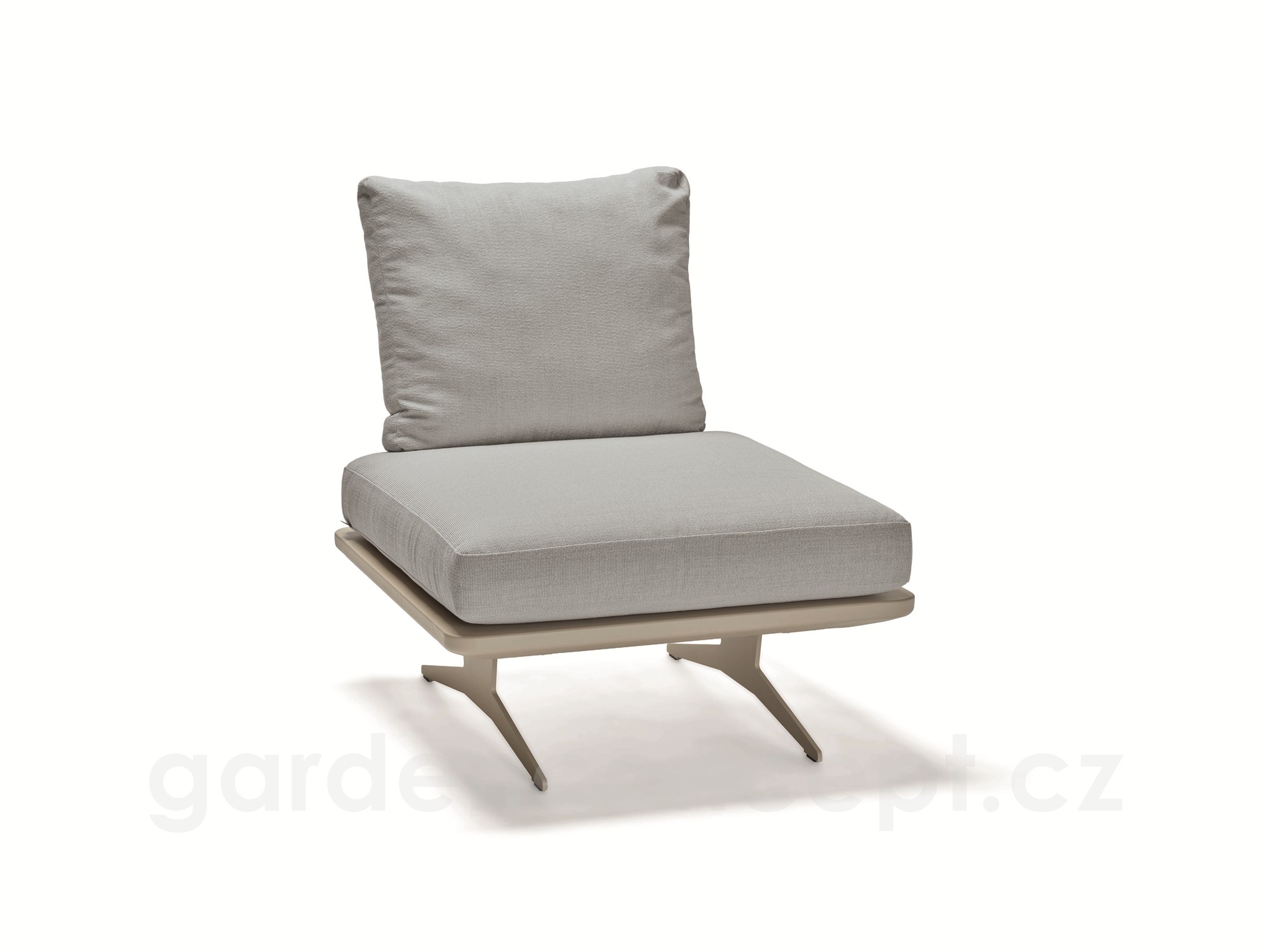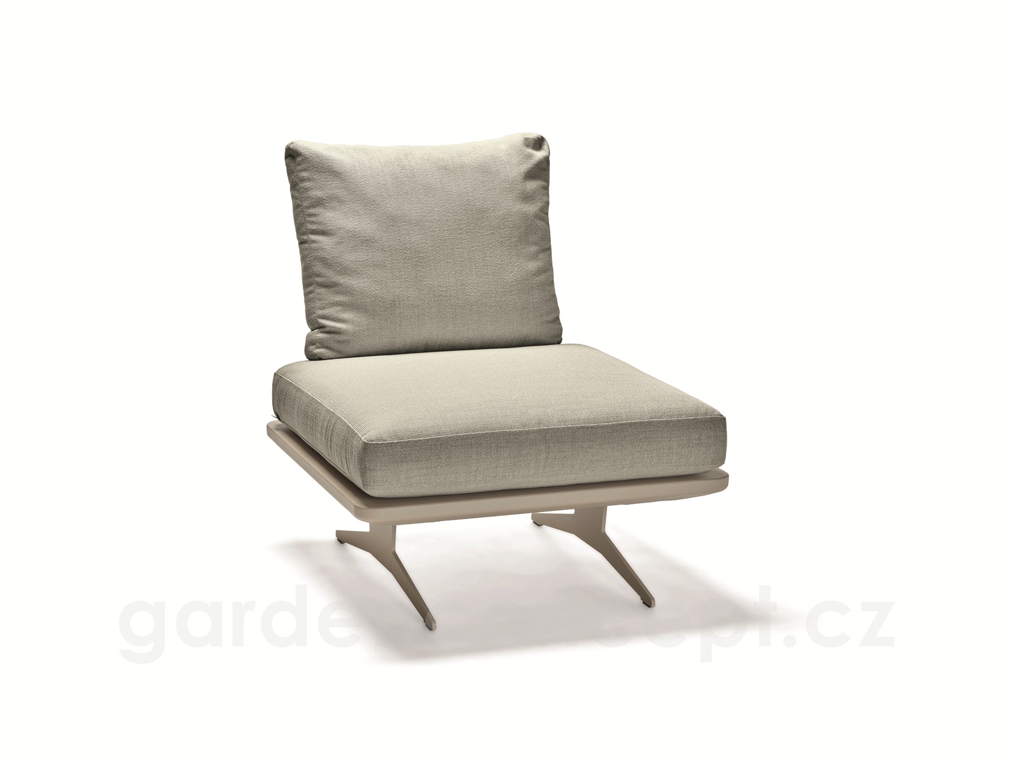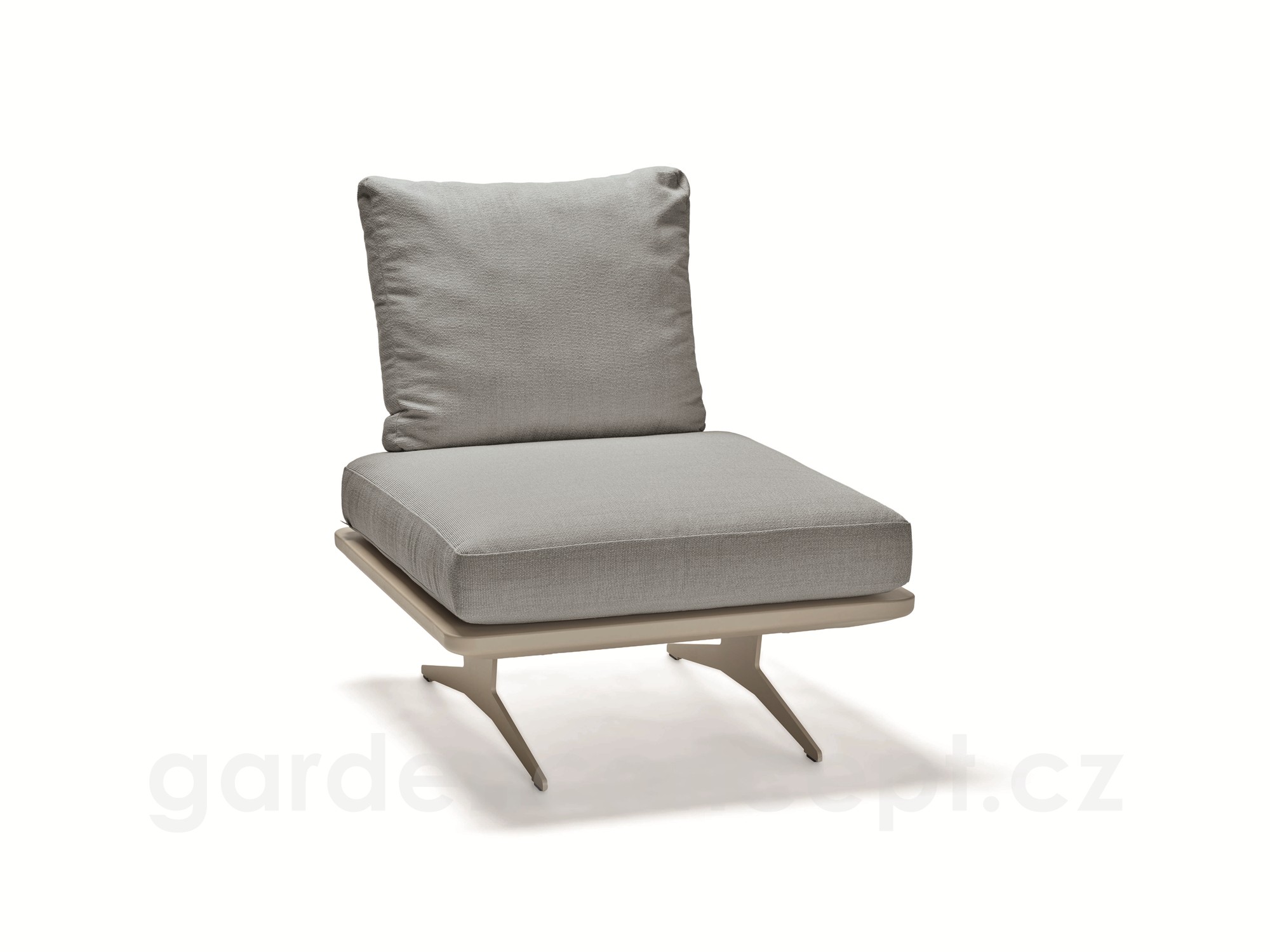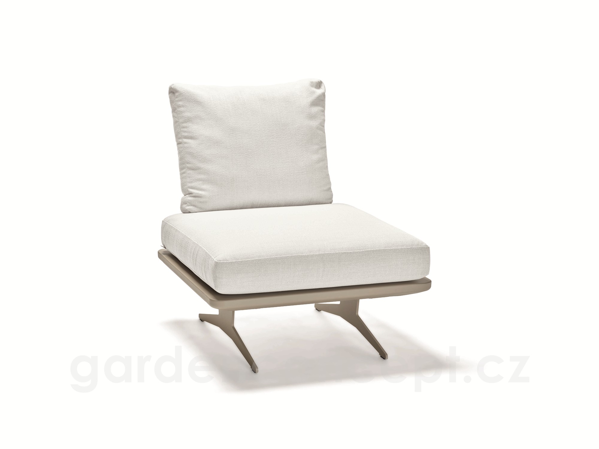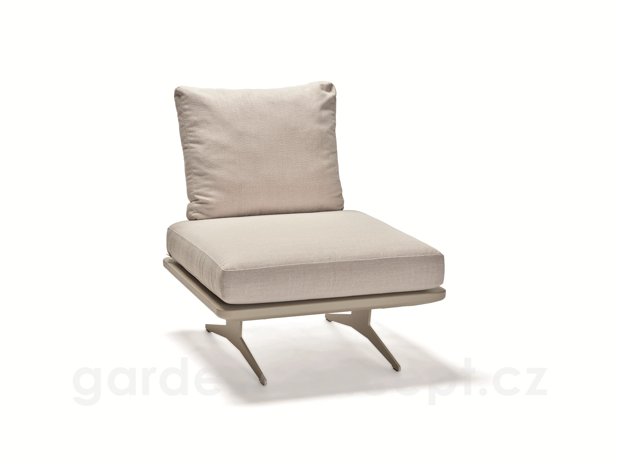 The piece features an exceptionally comfortable, high-profile cushion with a cover made from premium outdoor acrylic fabric. The cover is removable, zip-fastened, and washable.