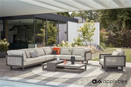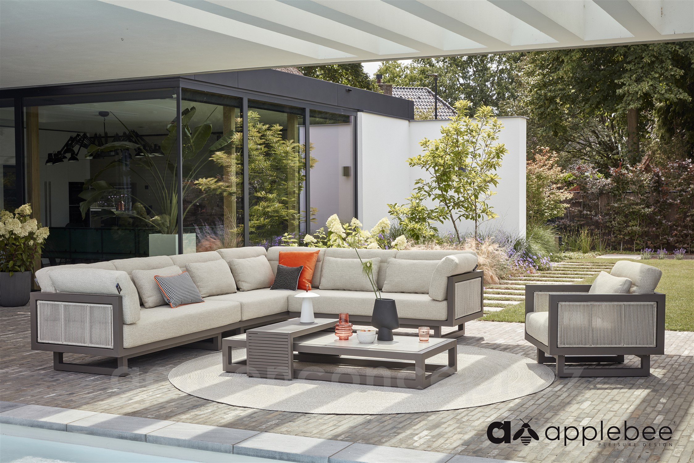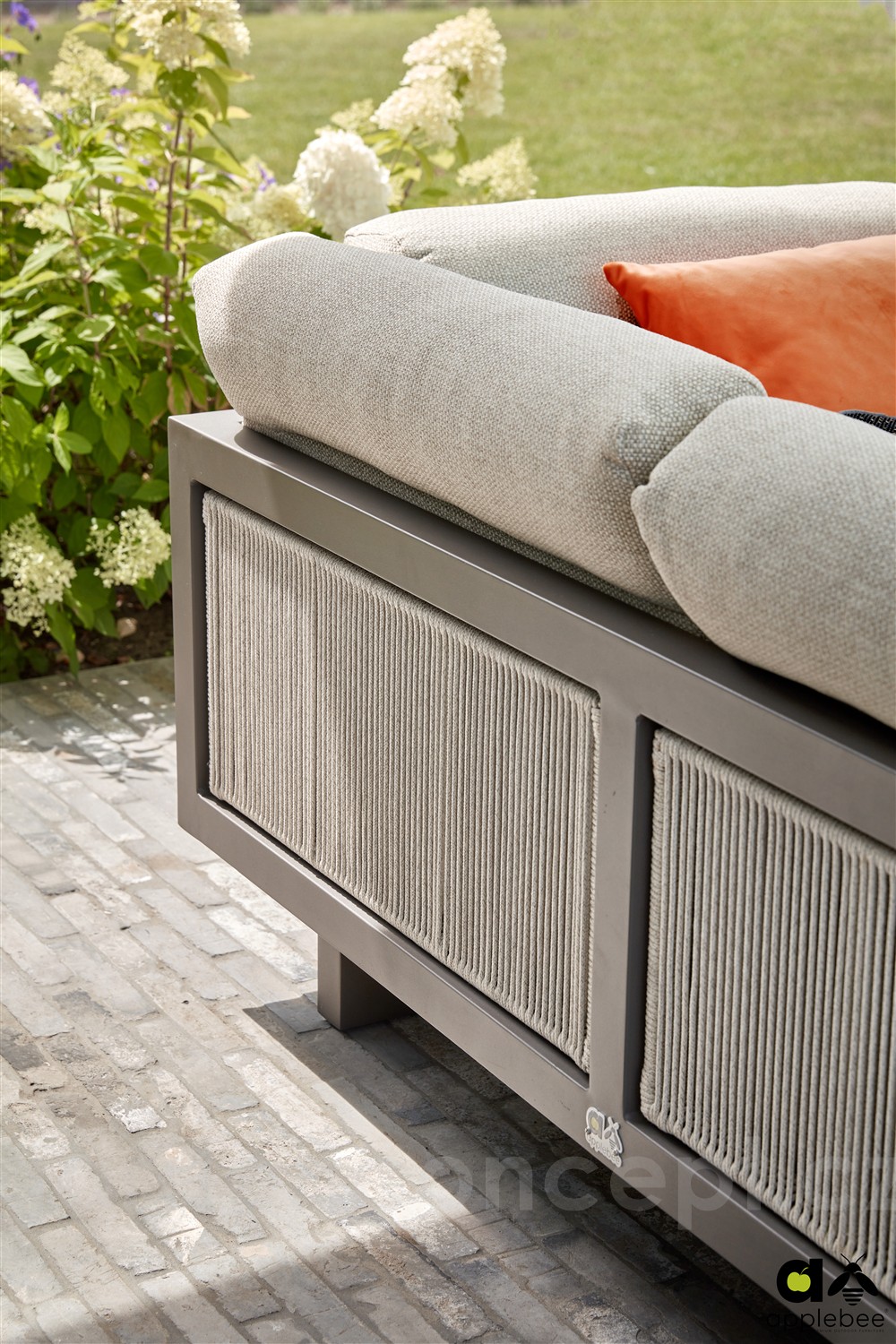 Ukončovací díl 2-místný levostranný Santorini Rope, Apple Bee, 159x81,5x60 cm, rám hliník Quartz, výplet lanko, venkovní látka Olefin Natural Oak