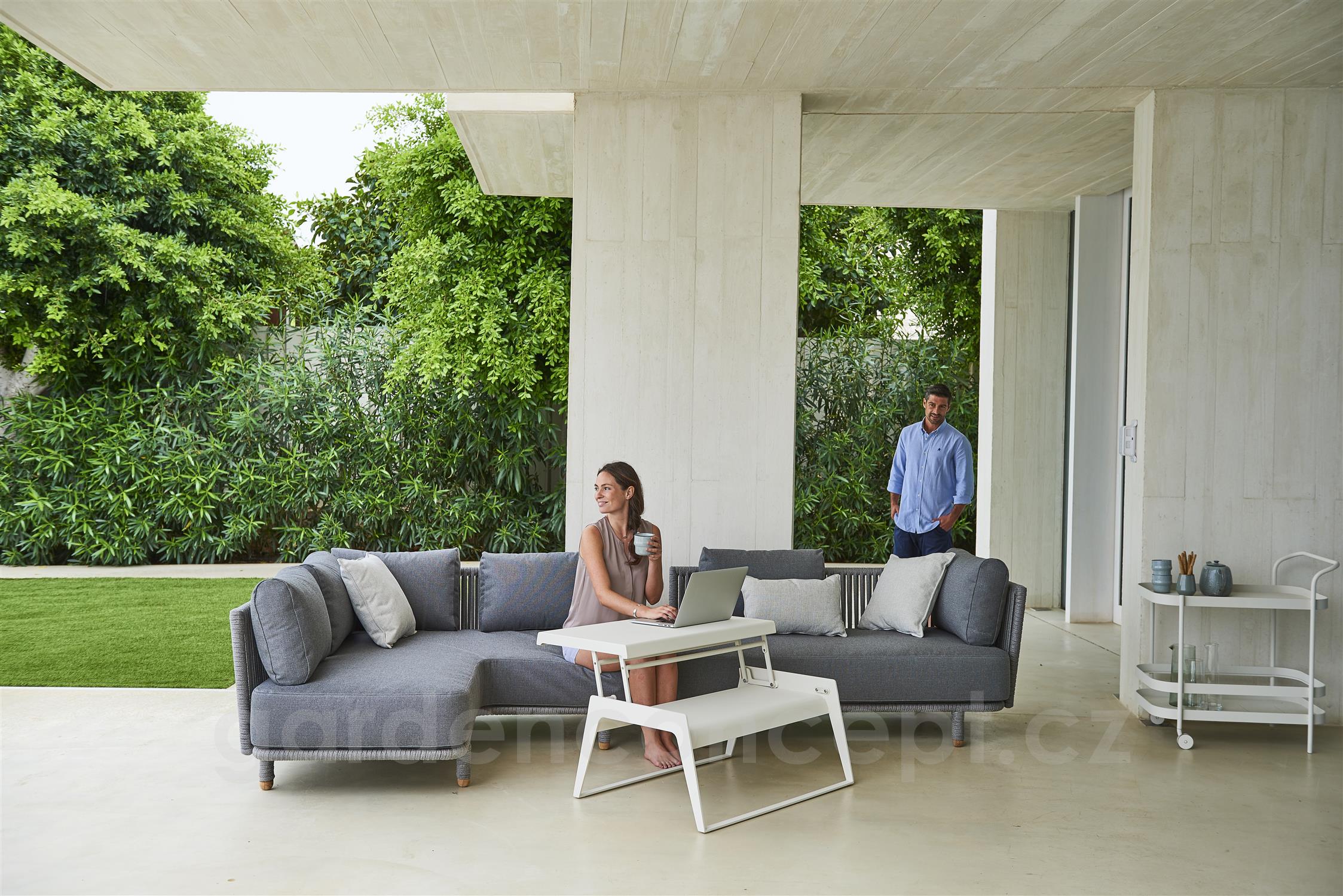Ukončovací levostranný díl/2-místná pohovka modulové zahradní sedací sestavy Moments značky Cane-line.