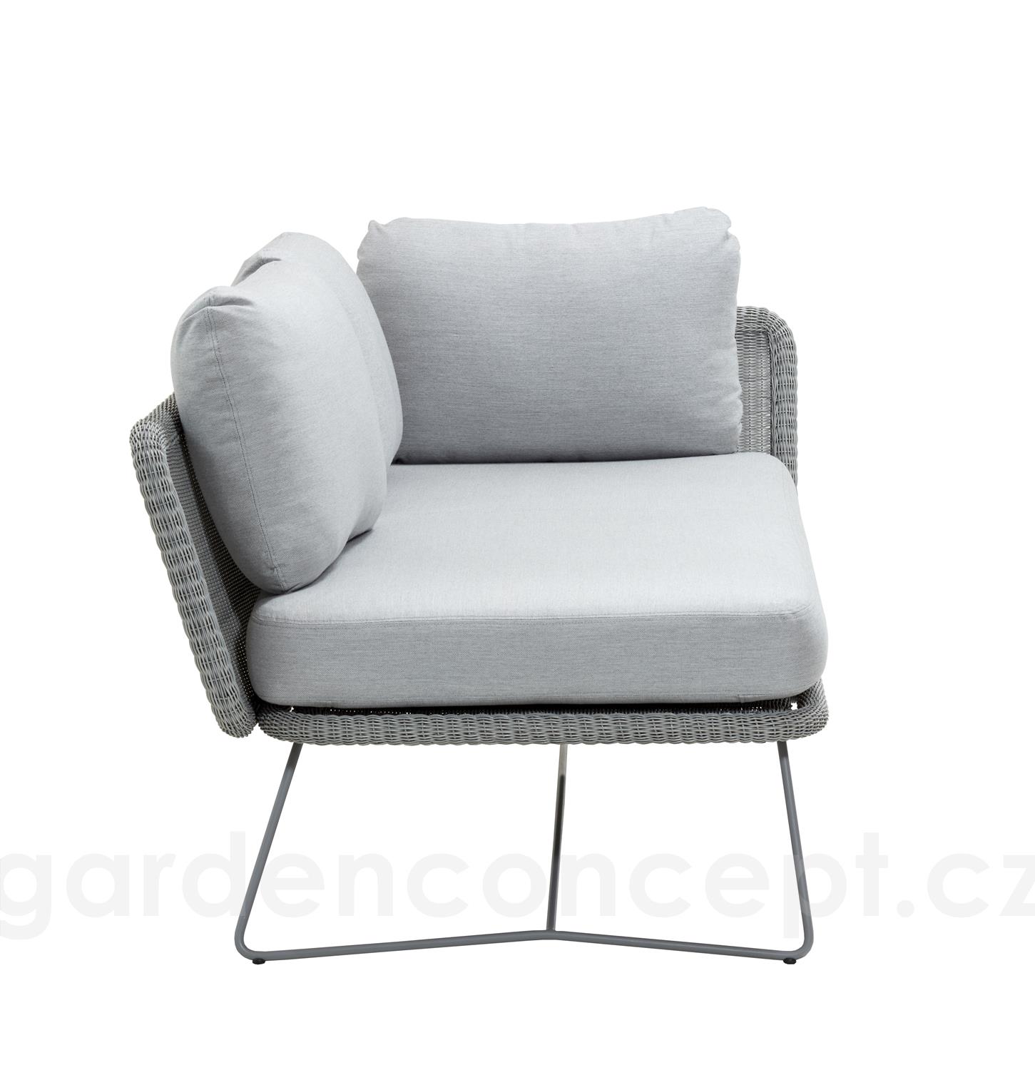 Ukončovací/rohový 2-místný pravostranný díl Horizon, Cane-line, 158x85x66 cm, rám kov, výplet umělý ratan barva light grey, venkovní látka Natté light grey