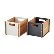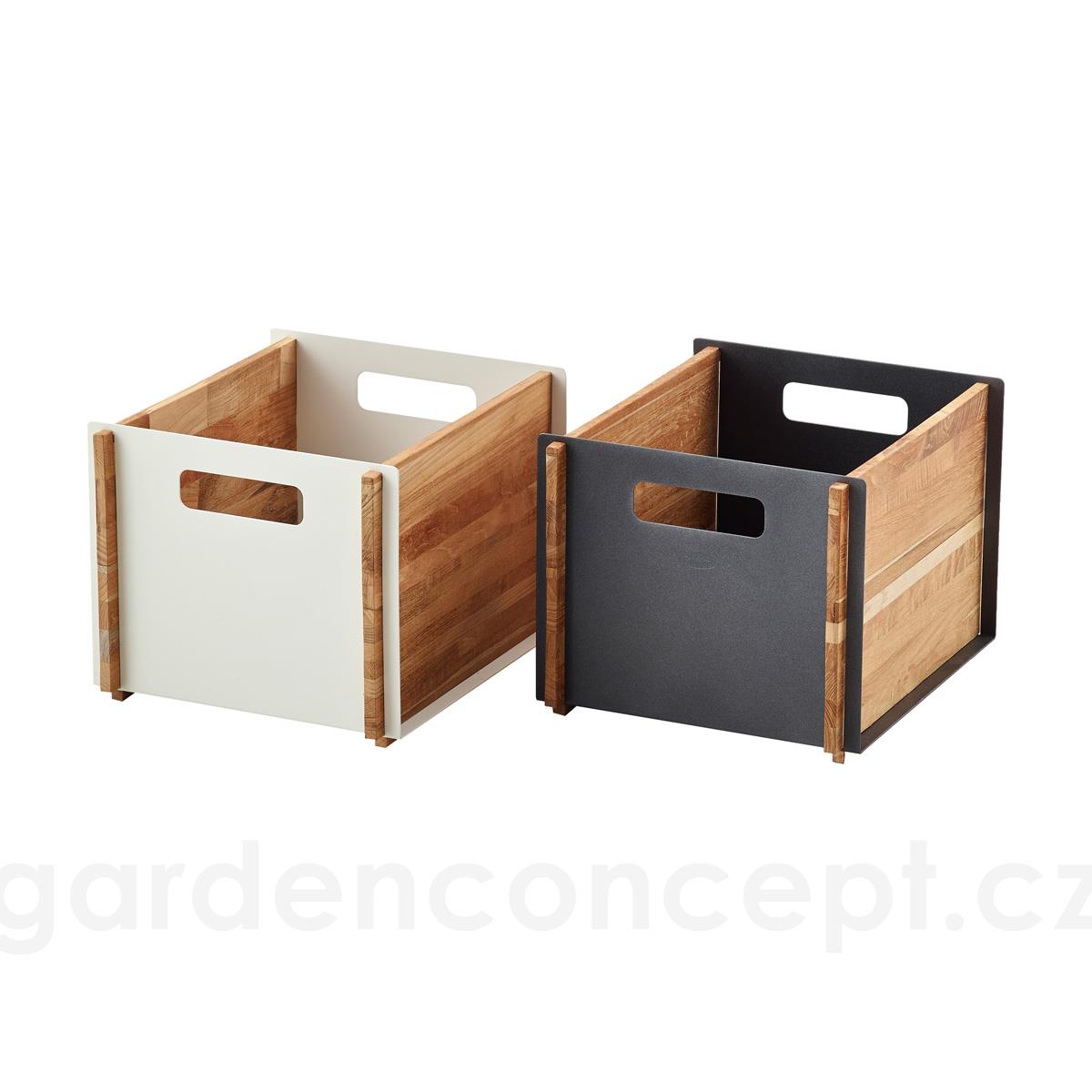 Úložný stohovatelný box kolekce Box značky Cane-line. Rám je z hliníku a teakového dřeva.
