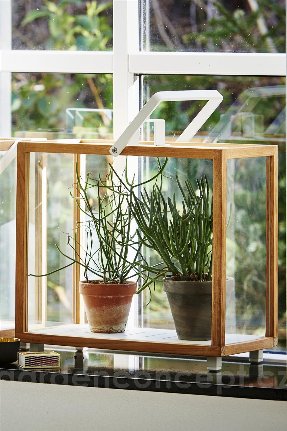 Teaková venkovní svítilna/lucerna L Lighthouse, Cane-line, 46x23x42 cm, rám teak, hliník barva white, sklo, lze koupit jen po 2 ks