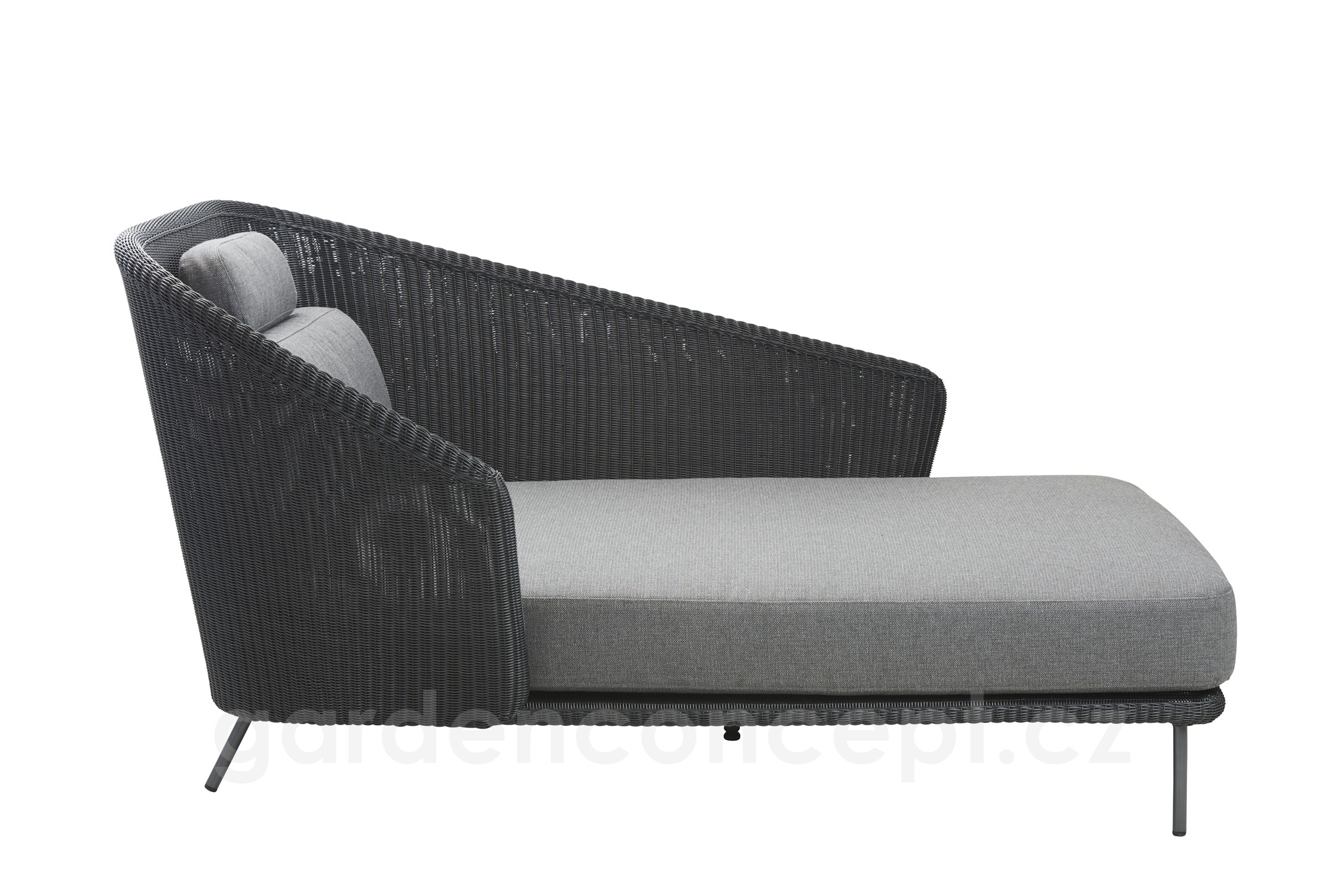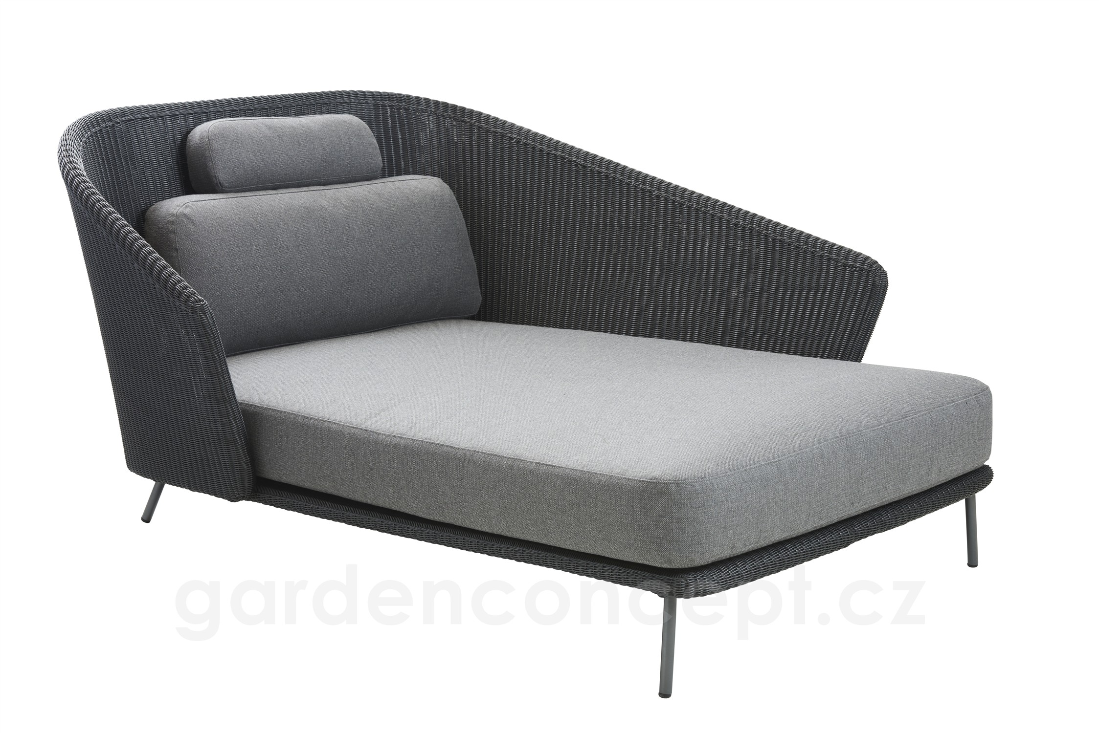 Denní postel/relaxační díl levostranný Mega, Cane-line, 180x128x91 cm, rám kov, výplet umělý ratan barva graphite, sedáky venkovní látka AirTouch grey