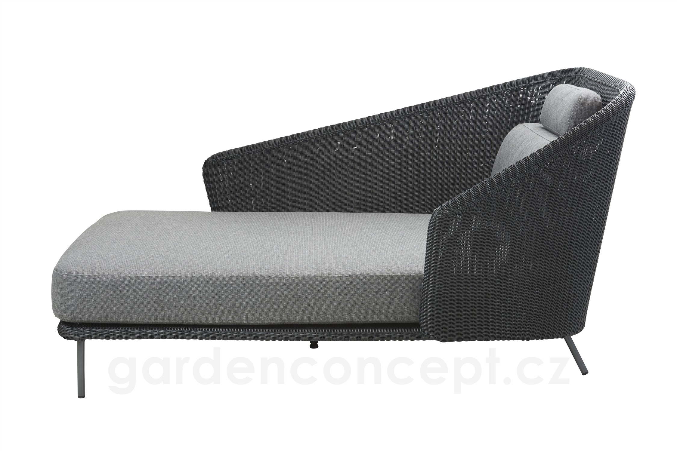 Denní postel/relaxační díl pravostranný Mega, Cane-line, 128x180x91 cm, rám kov, výplet umělý ratan barva graphite, sedáky venkovní látka AirTouch grey