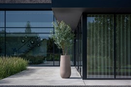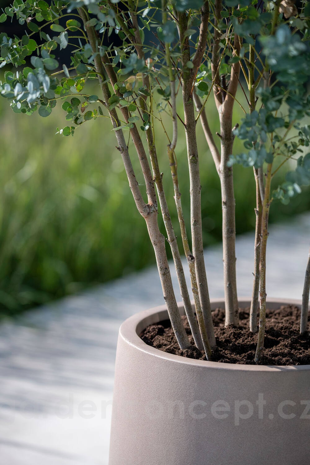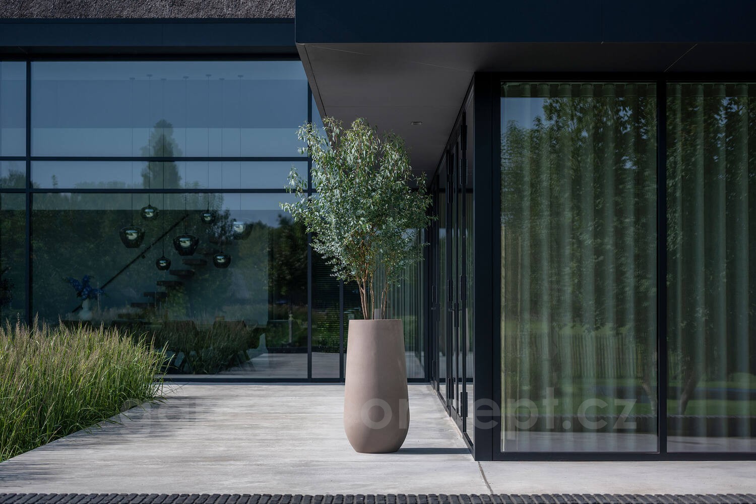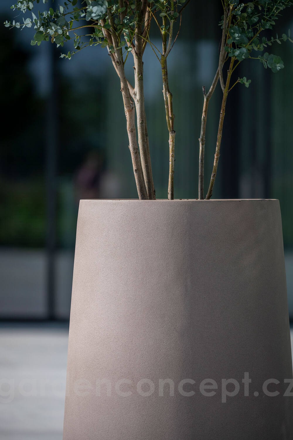 Venkovní květináč kulatý Nax L, Taupe (barva béžová taupe), kolekce Natural, kompozit Fiberstone, průměr 50 cm x v 100 cm, objem cca 158 l